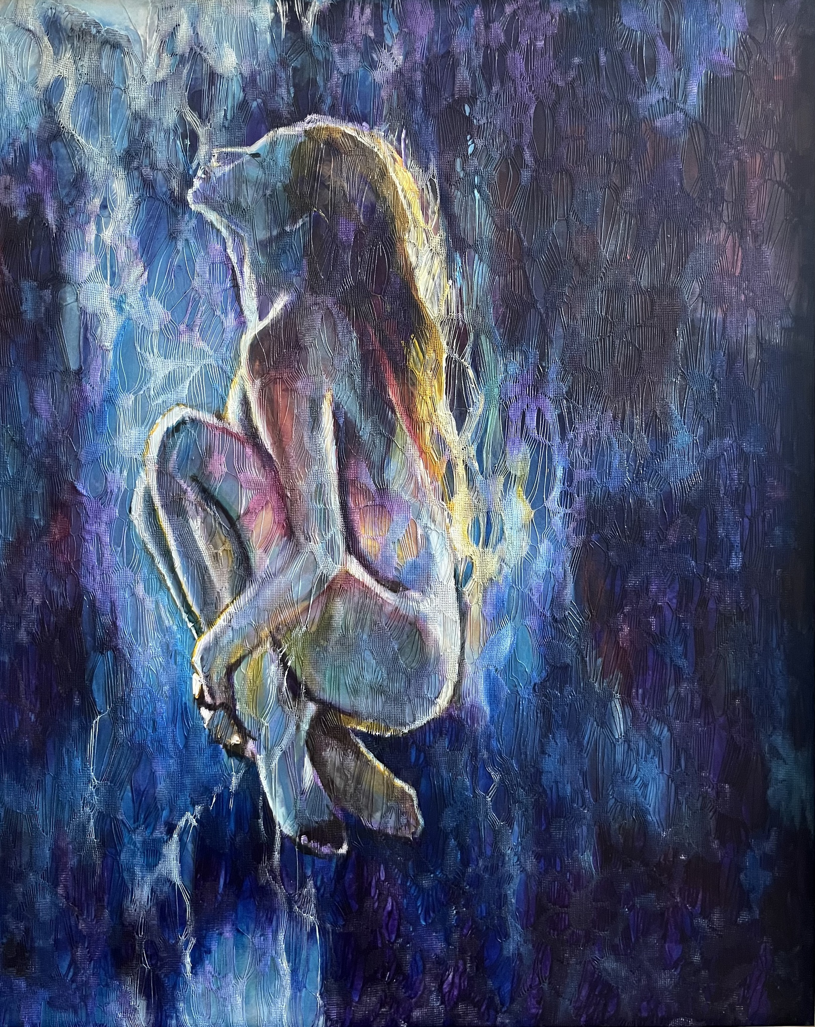 Figuur Onderwater Kant Stof Acryl Schilderij