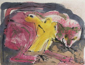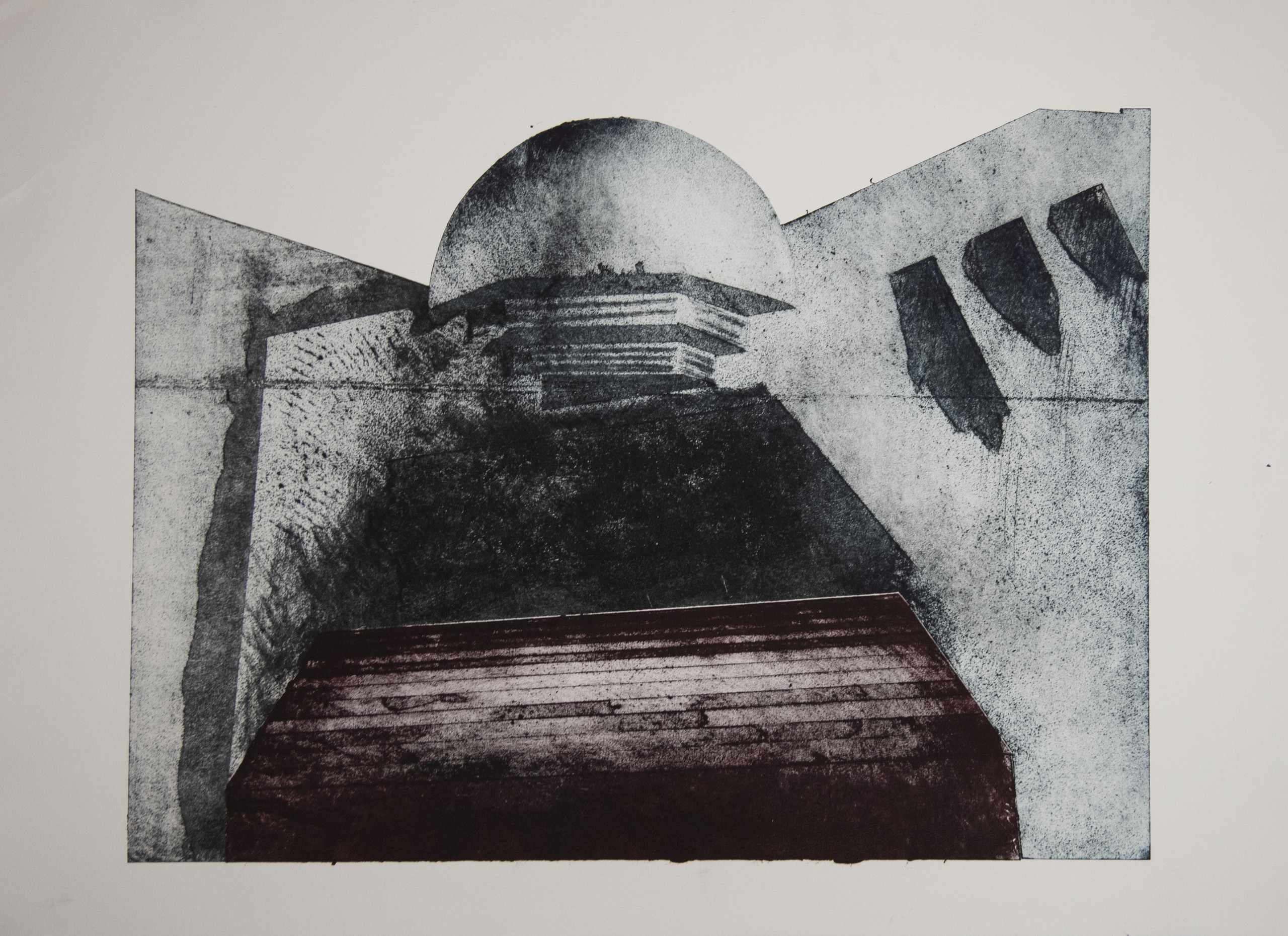 In mijn jeugd ik heb aan de kust gewoond, bunkers op fiets afstand, waar werkelijkheid en fantasie voor mij een nieuw verhaal maakte. Spannende 2de WO geschiedenis gezien door kinderogen, mix van fantasie, voorstellingsvermogen en avontuur. Nog steeds fascineert mij deze schuil en verdedigingsarchitectuur, meter dikke gewapend betonnen muren, bijna onverwoestbaar, met hun vuurspuwende vizier. Dit werk is kartongravuredruk vrij zeldzaam en in kleine oplage.