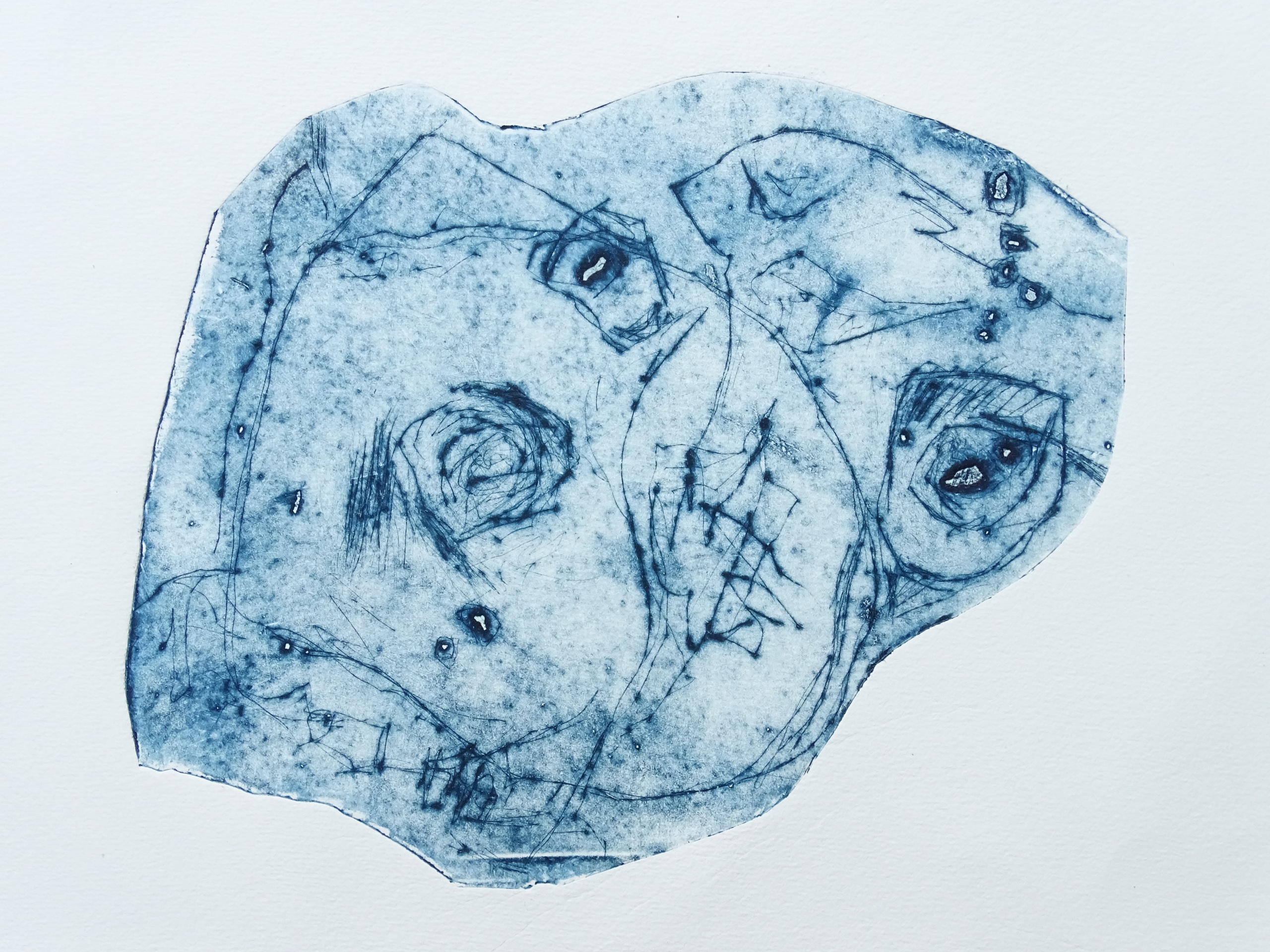 koude naald 'ets' op achterkant oude off-set plaat (uitgave 1 ex.)