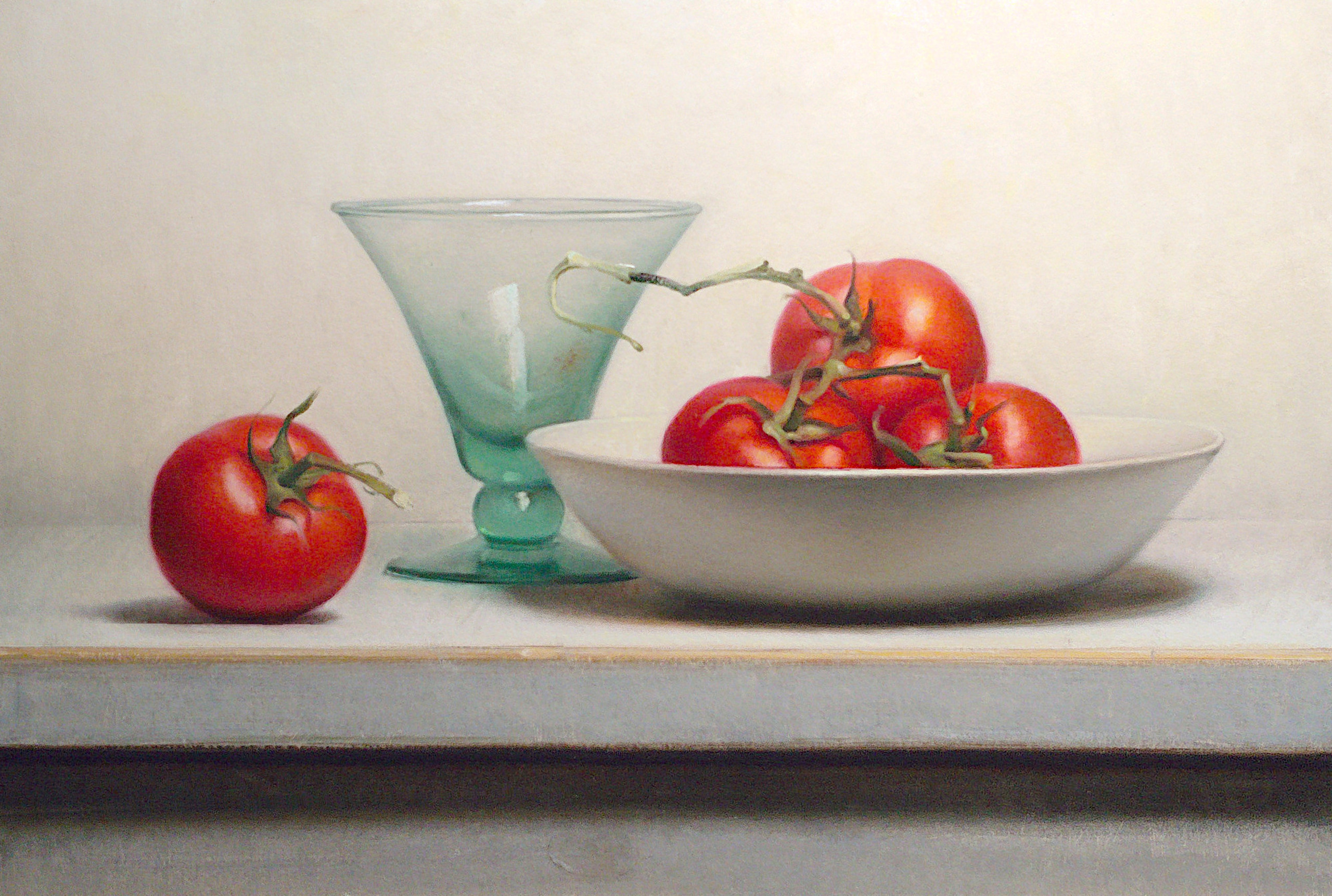 Stilleven met tomaten en glas