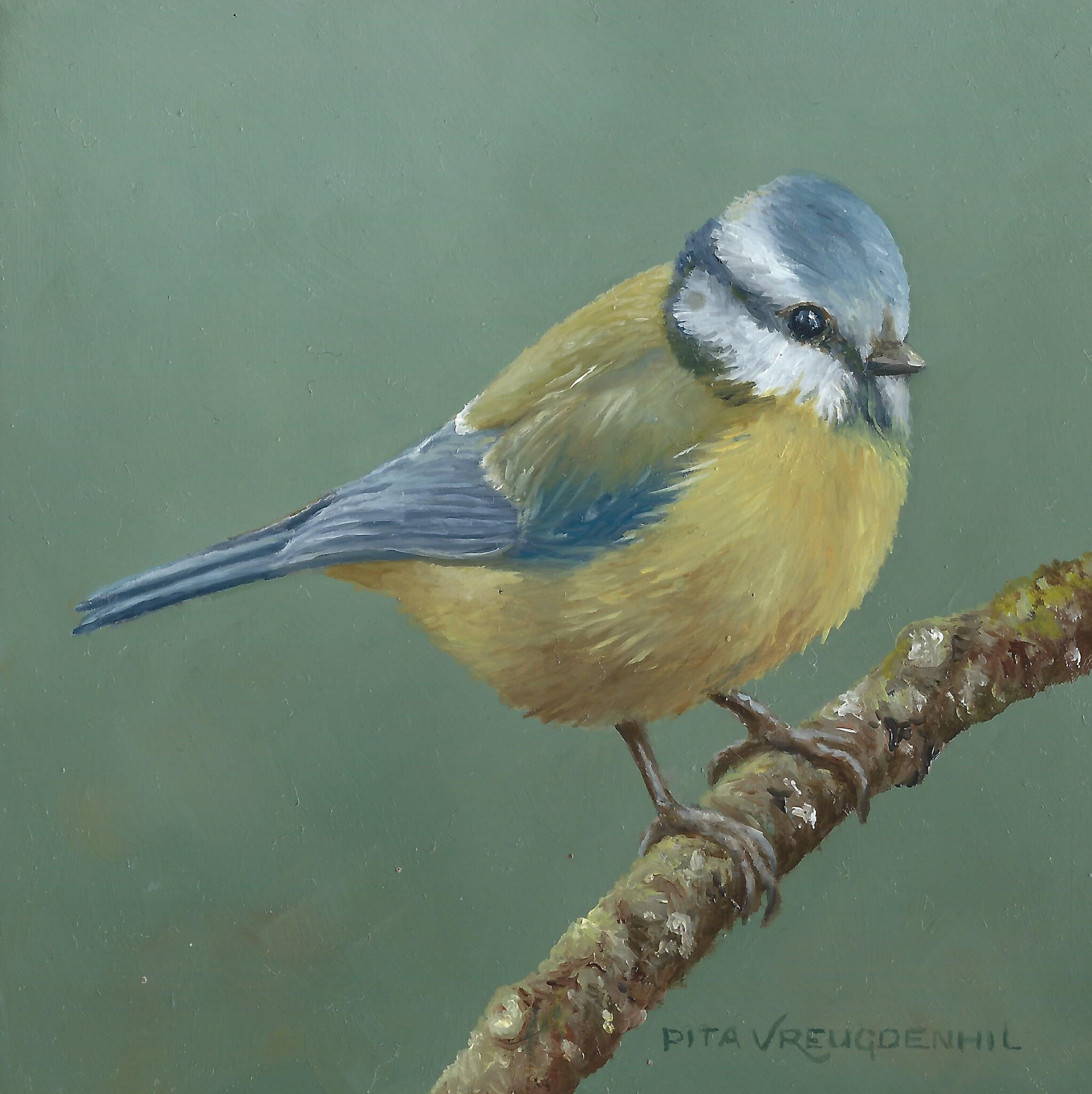 Figuratief Vogel Dier Realistisch Olieverf Paneel Stilleven Pimpelmees Realisme Ingelijst Tekoop