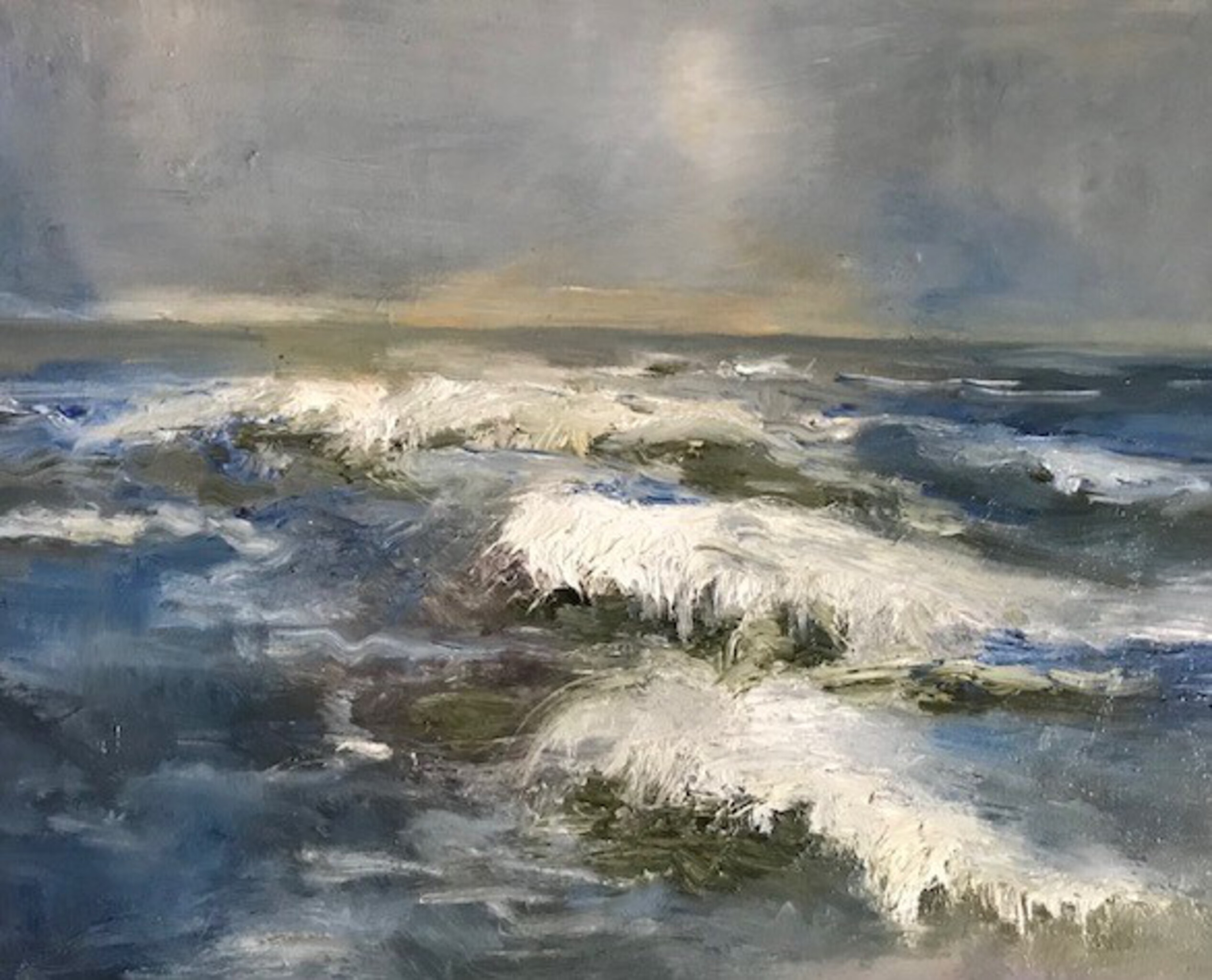 Zwannie schildert. Het gaat om de suggestie met verf. Verf dat als materiaal zichtbaar mag blijven. Haar stijl is impressionistisch en het werk heeft een grote zeggingskracht.