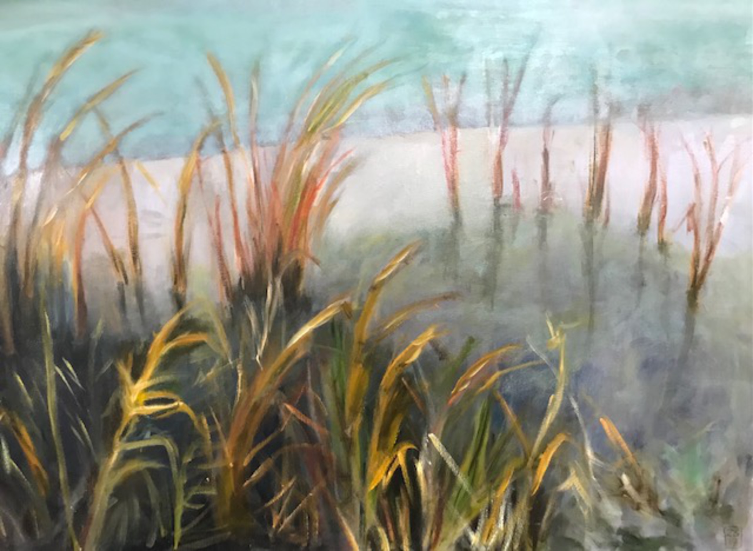 Zwannie schildert. Het gaat om de suggestie met verf. Verf dat als materiaal zichtbaar mag blijven. Haar stijl is impressionistisch en het werk heeft een grote zeggingskracht.