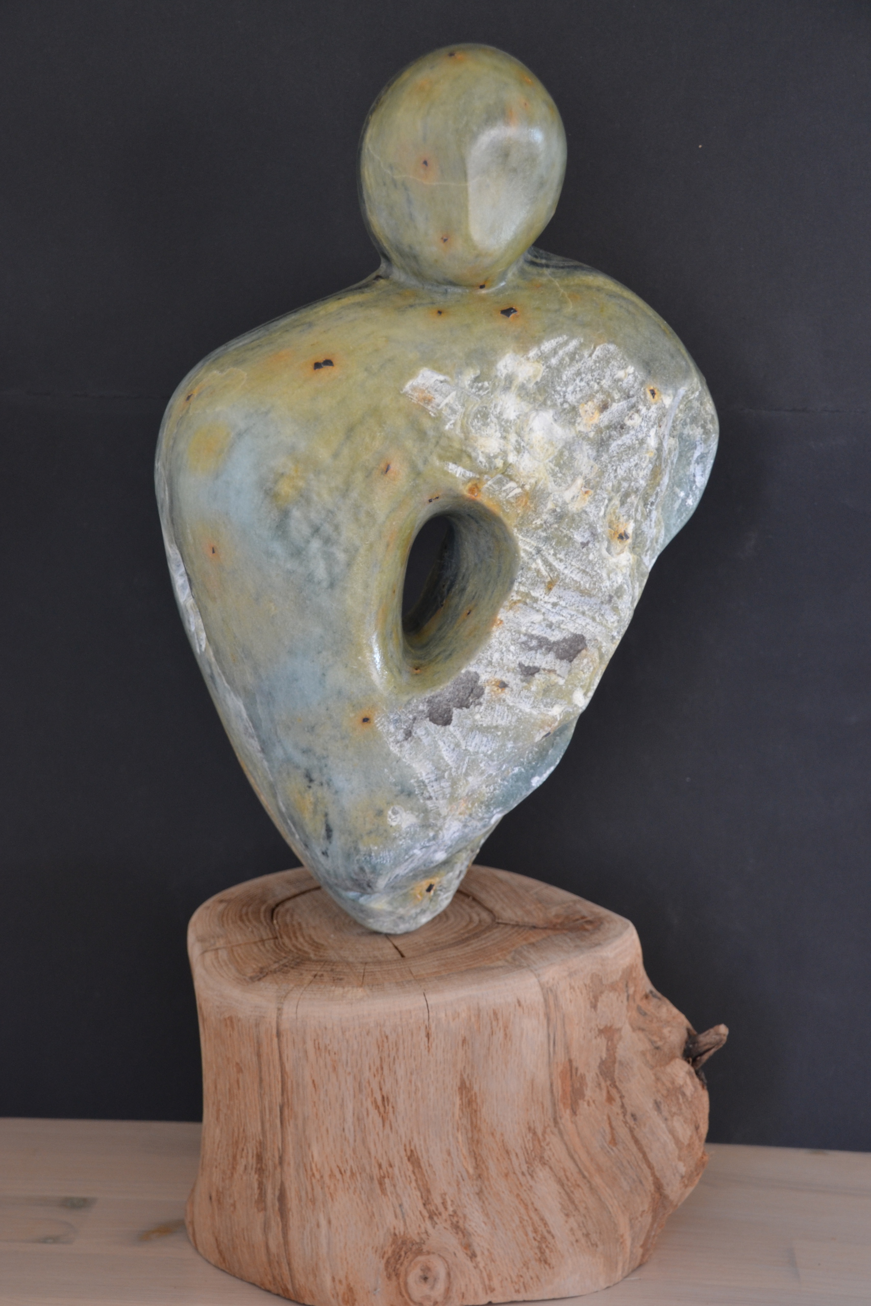Gemeleerde speksteen op stam.