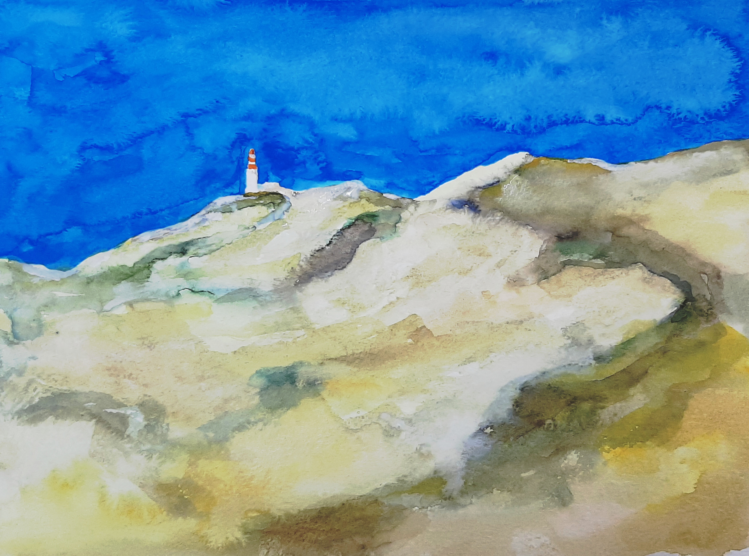 De Mont Ventoux (1909 m.) is een mythische berg in de Franse Provence. Gevreesd door de wielrenners die hem moeten befietsen. De Kale Berg, is zijn bijnaam. En inderdaad: je waant je er op een maanlandschap. Helaas heb ik hem nooit befietst. Wel een paar keer er per auto naar boven geweest. En ook dat maakt indruk. Het kan er spoken, vooral vanwege de ijzige wind. Niet zonder reden: Mont Ventoux. Want het Franse ‘vent’ betekent ‘wind’. De winderige berg, dus. De koning van de Provence. Van verre al zichtbaar. Aquarel op 300grams Canson Montval papier. De vermelde prijs is exclusief passe-partout en/of lijst