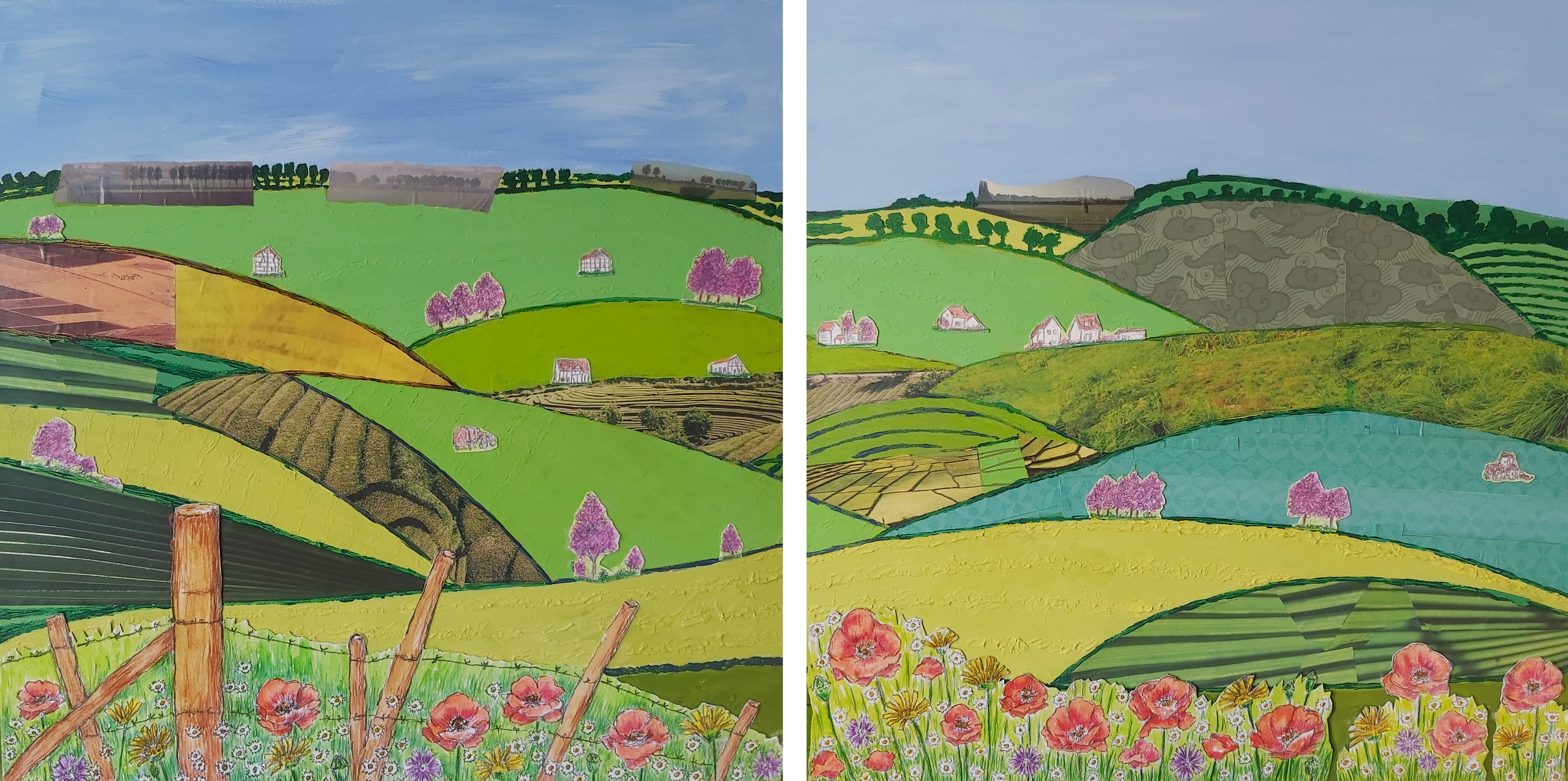 Heuvels Limburg Heuvellandschap Acryl Collage Groen Lente Klaprozen Bloemen Wandelen