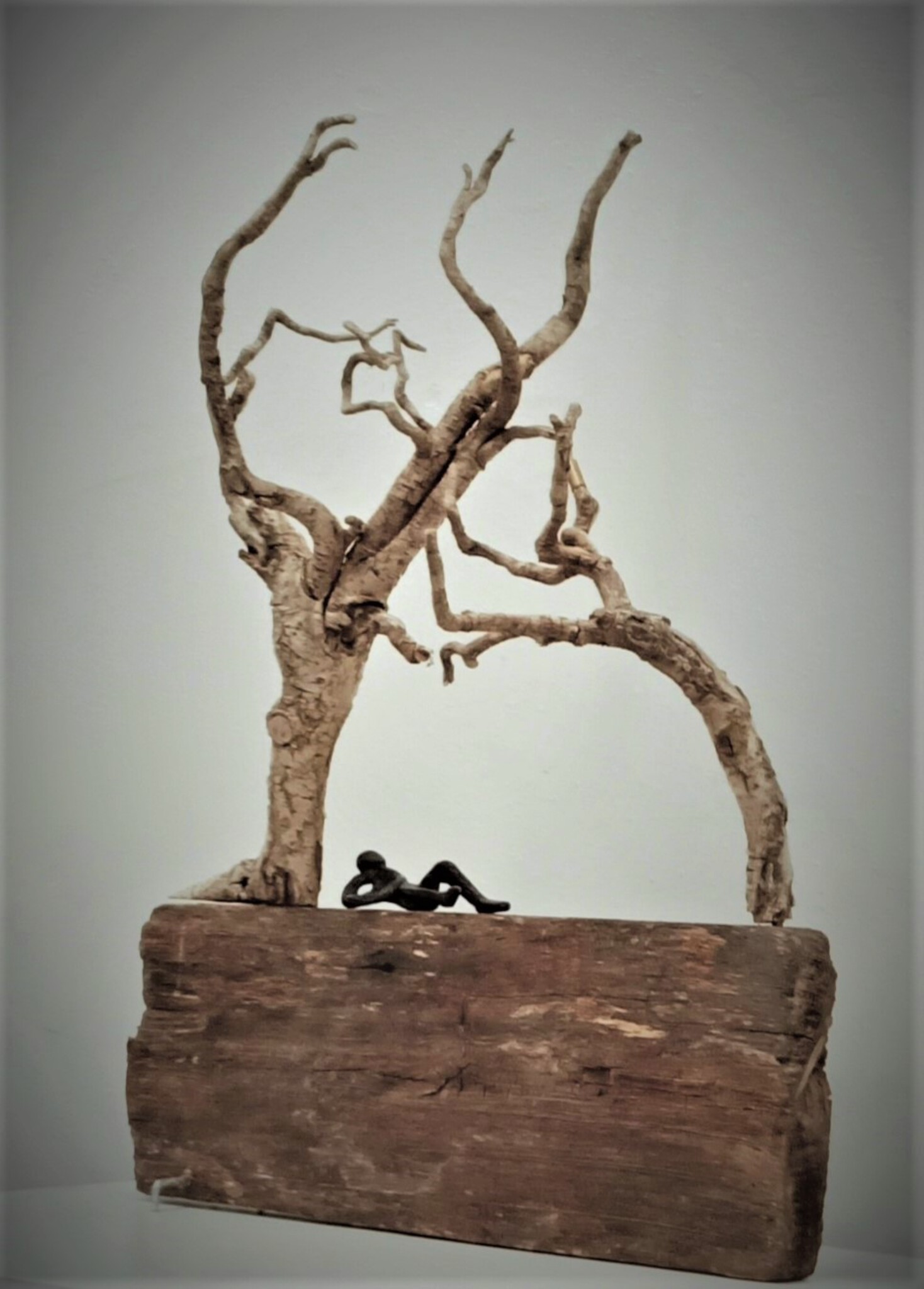 Mijn objecten komen vaak voort uit gevonden voorwerpen. Ik combineer hout, met zelf ontworpen bronzen beelden en natuurlijke materialen.