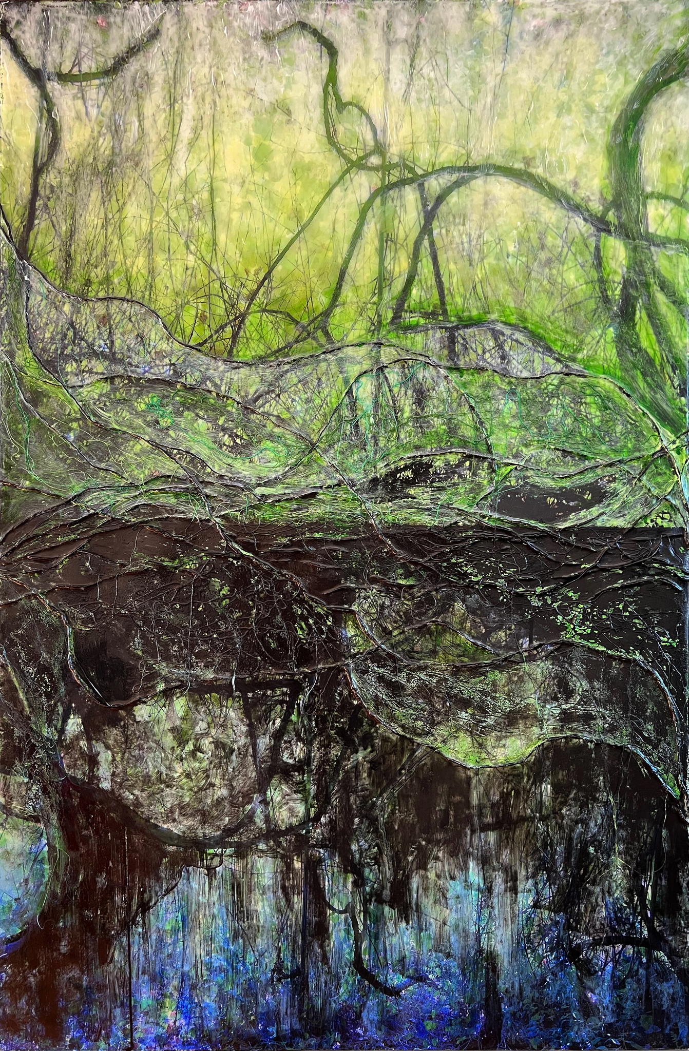 Zwart Groen Olieverf Natuur Draad Touw Inkt Aarde Weerspiegeling Mist Wortels Verf Stromen Moeras Grond Waterkant Kluwen Onderaards Aarden Garen Epoxy Wortelen