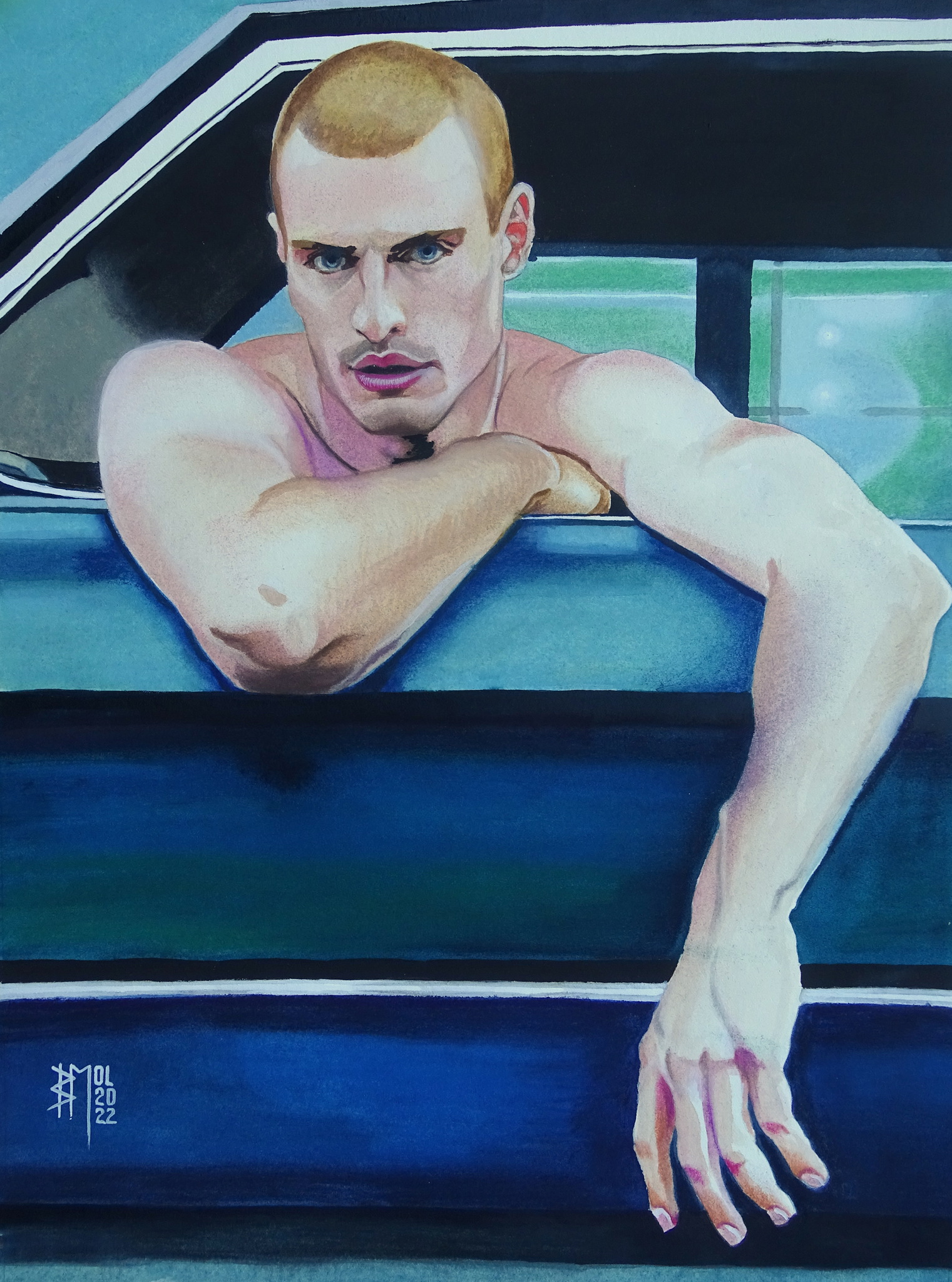 Car Boy Man Shirtless Crewcut Bearcub Otter Queer Queerart Gay Dutchartist Rotterdam Auto
