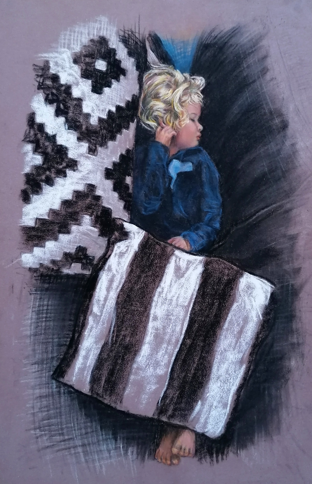 Wanneer slapen dromen? Een pasteltekening.