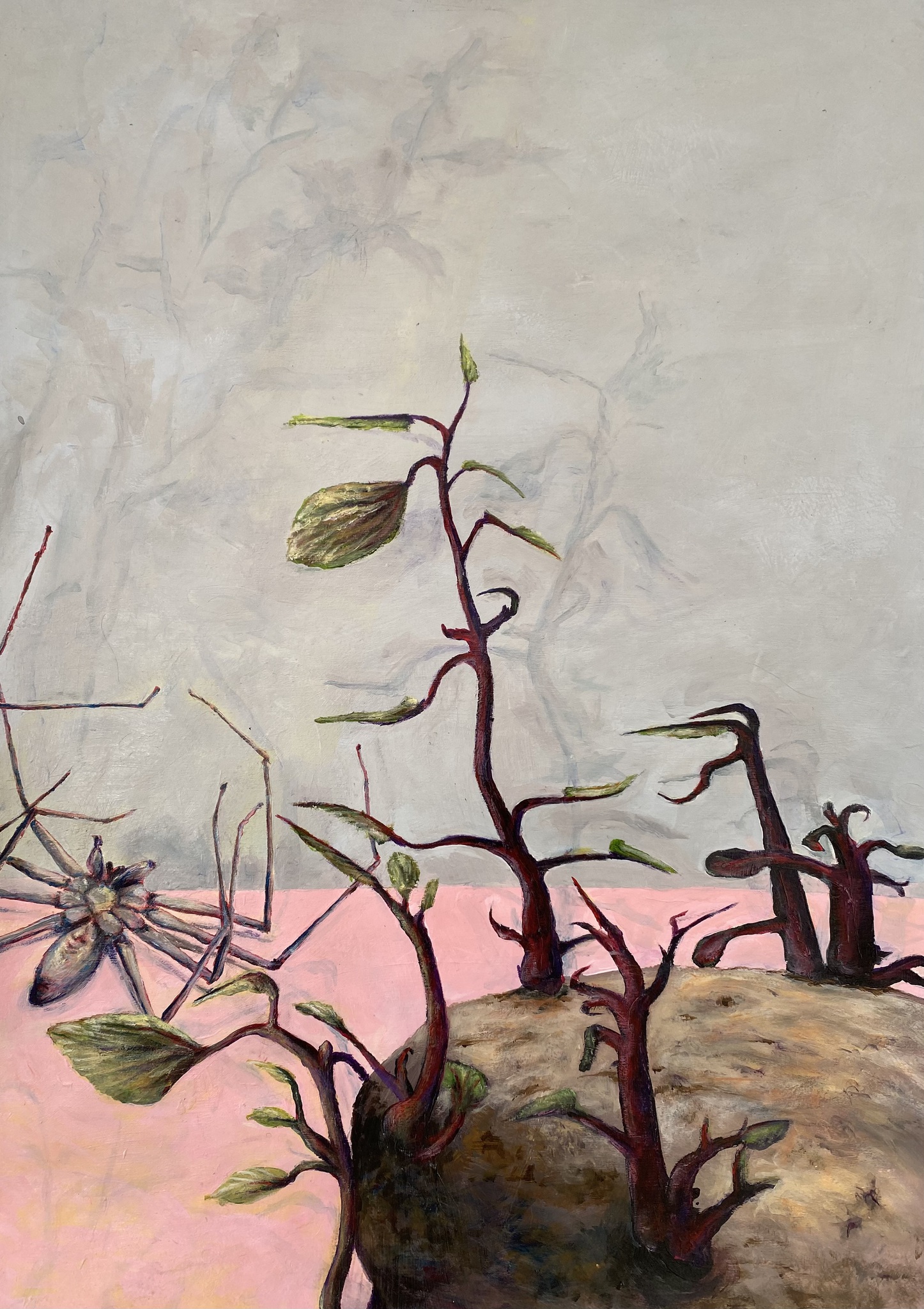 Uitlopende aardappel, dode spin en silhouet