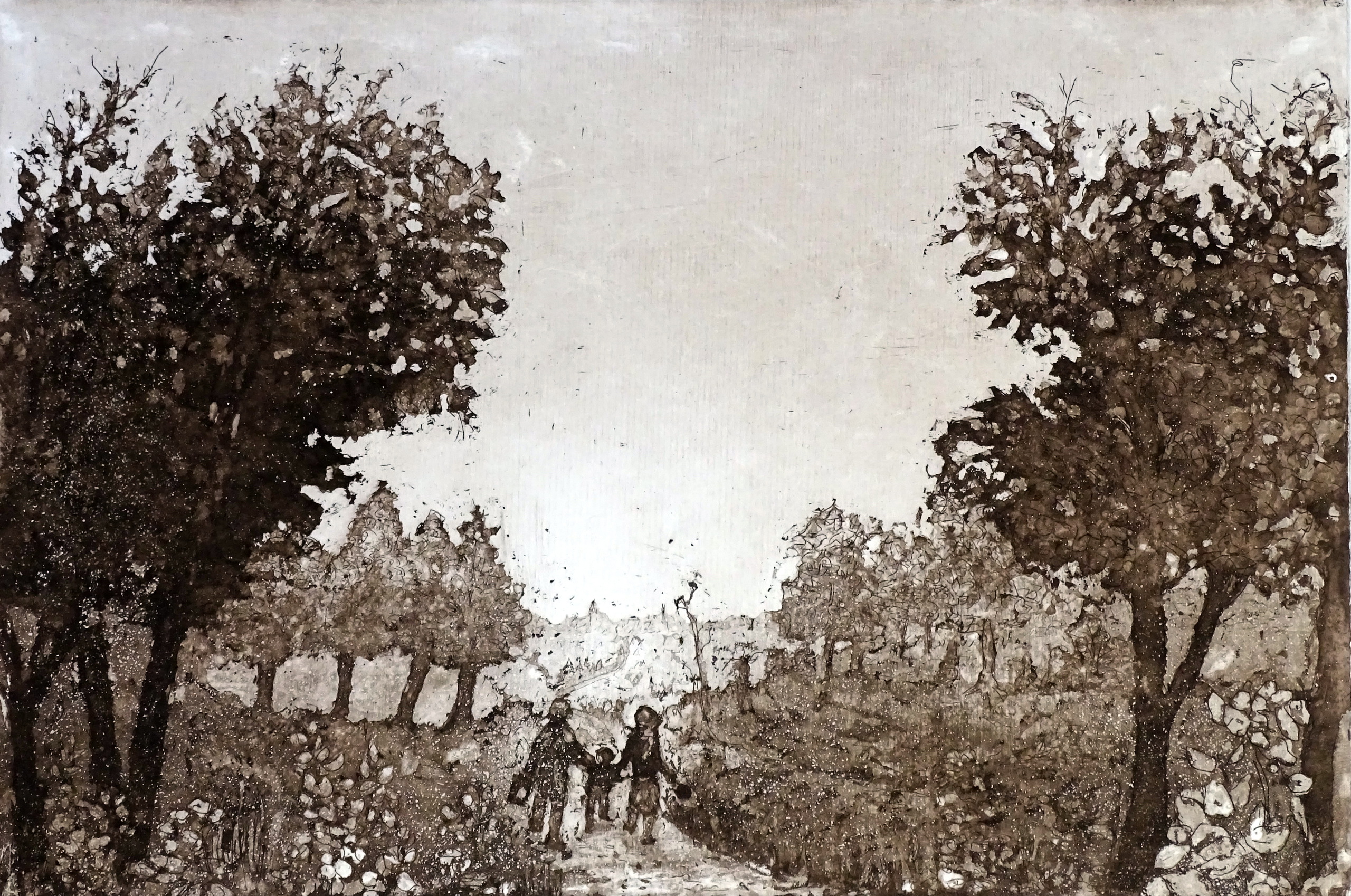 abstraherend werk, vertellend over het berooide gezin, lopend naar de vrijheid, daarginds waar het licht is. Freedomia is een fictieve plek, de vrije wereld voorstellend. de vluchtendje miens zeukt ut leech, de vrieheid ,op . Mit bienao niks mieer zeen ze op waeg nao Freedomia. (de Vrieheid)