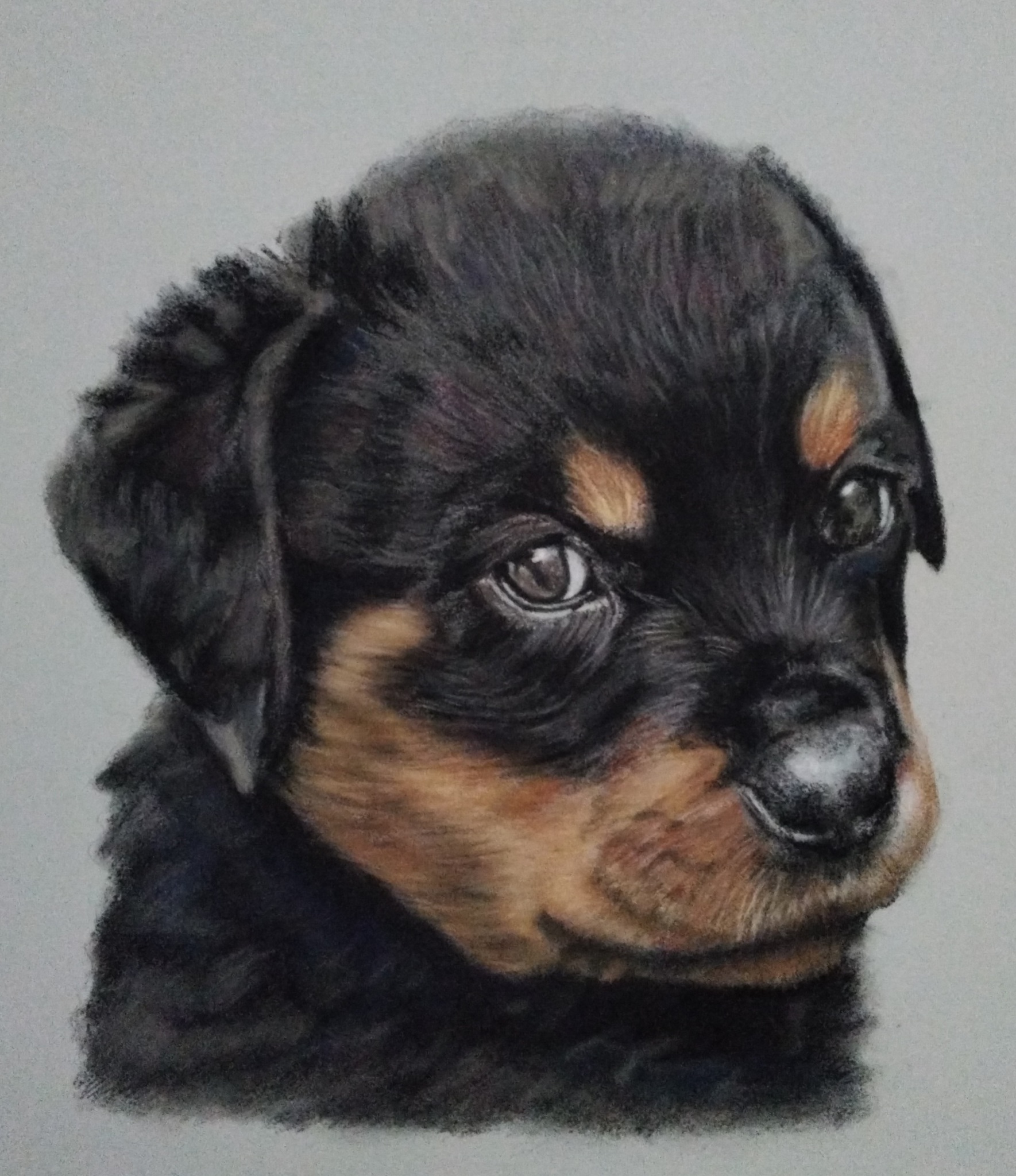 Dit lieve portretje is getekend met pastelpotloden op pastelmat papier. De tekening is te koop voor 85,00 Euro, inclusief aangetekend verzenden als brievenbuspakje.