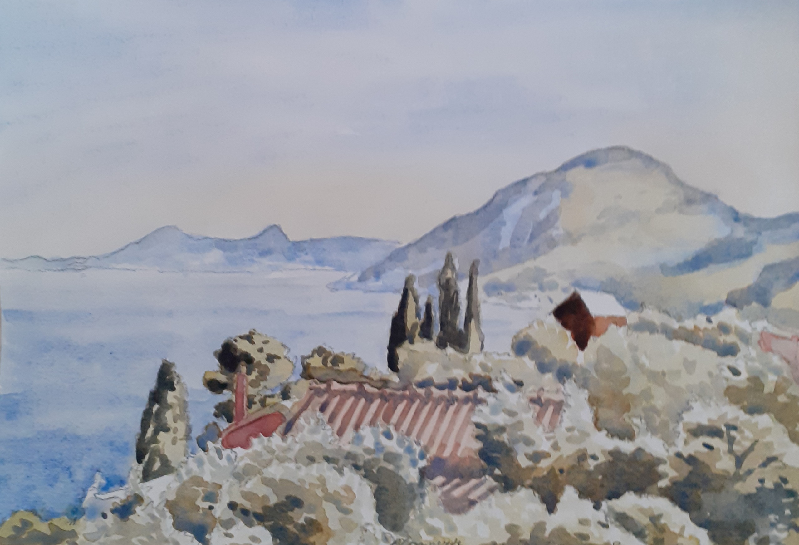 Figuratief Realistisch Aquarel Zeegezicht Corfu