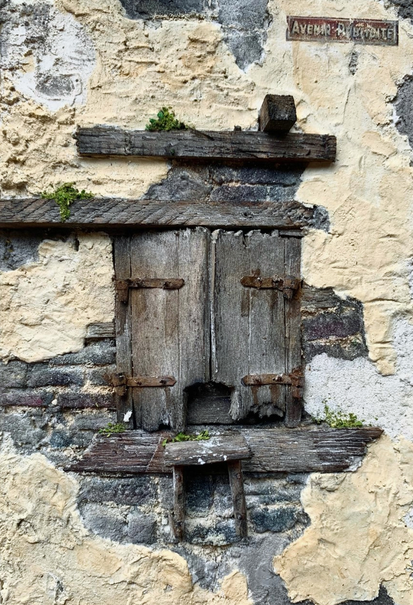 Ergens achteraf in het Franse dorp Sancey in het departement Doubs vond ik inspiratie voor dit paneeltje. Een buiten gebruik gesteld duivenverblijf.
