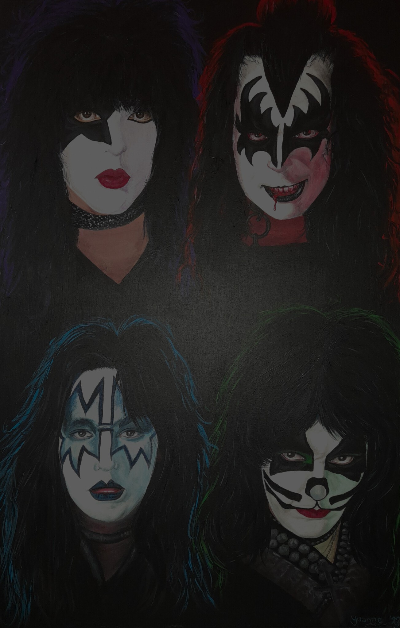 Nog niet veel ervaring met schilderen. Toch verzoek aangenomen van grote Kiss fan ;-) Acryl op doek.