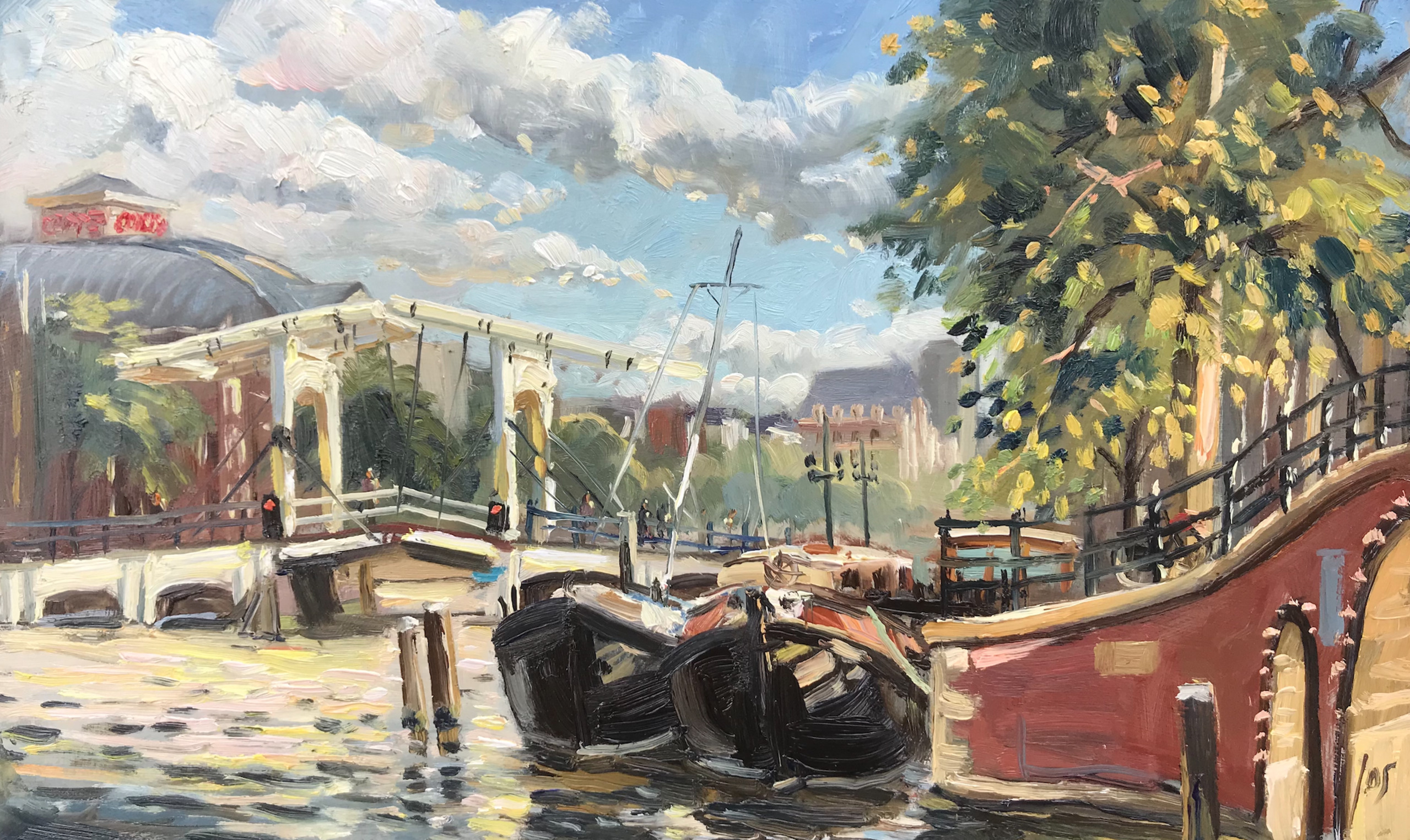 de Magere Brug in Amsterdam in olieverf