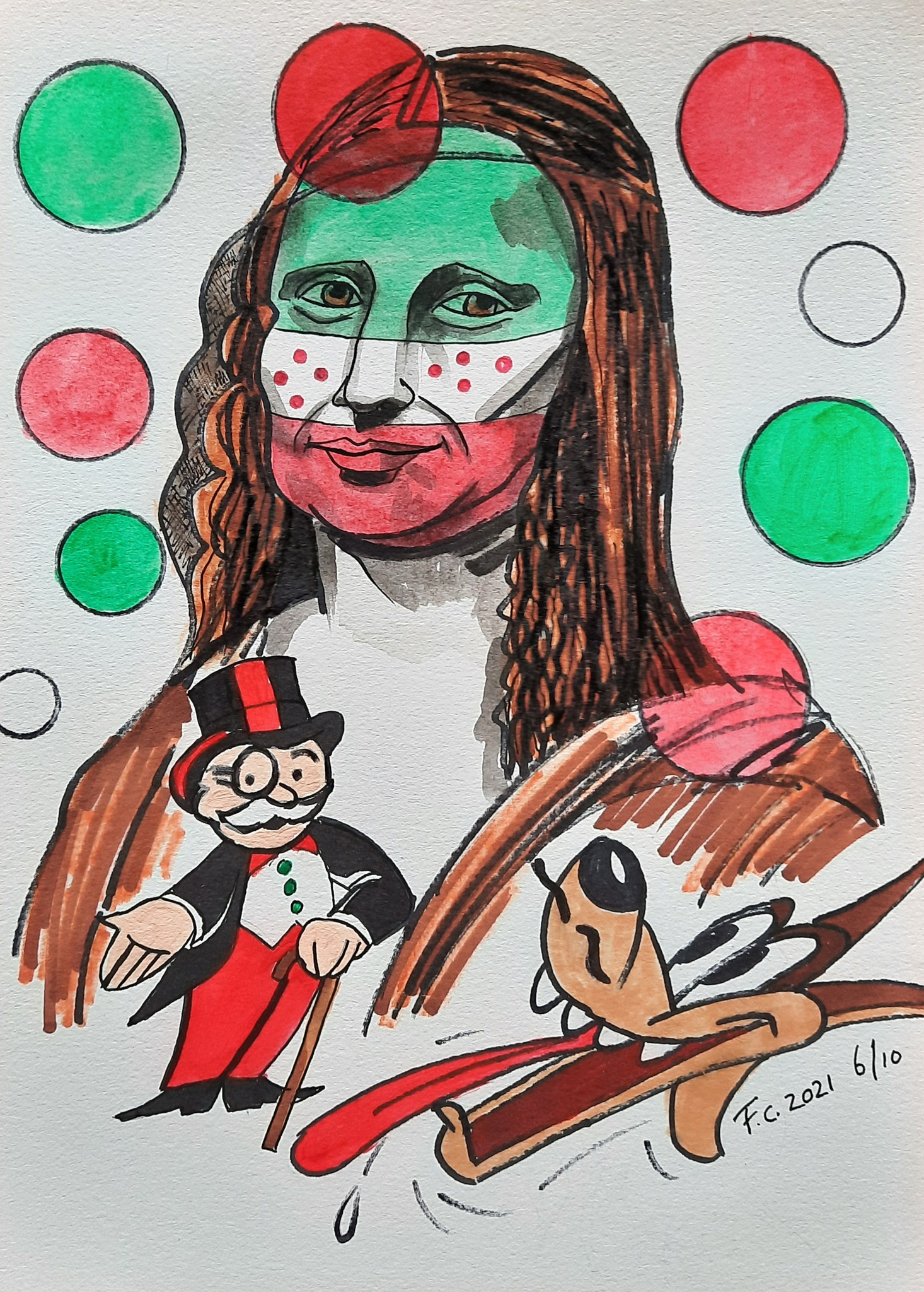 Wolf Mixedmedia Popart Monalisa Humor