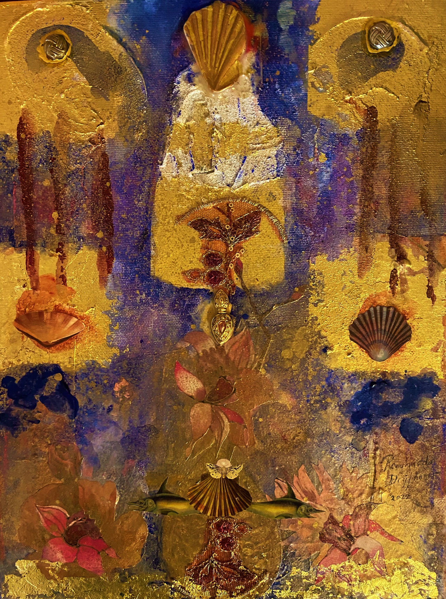 Art Mixed Media Collage Paper Assemblage Poetry Alhambra Goldleaf Handmade Andalucia Watercolors Monuments Decorations Panels Rich Wealth Experimental Visuel Richesse