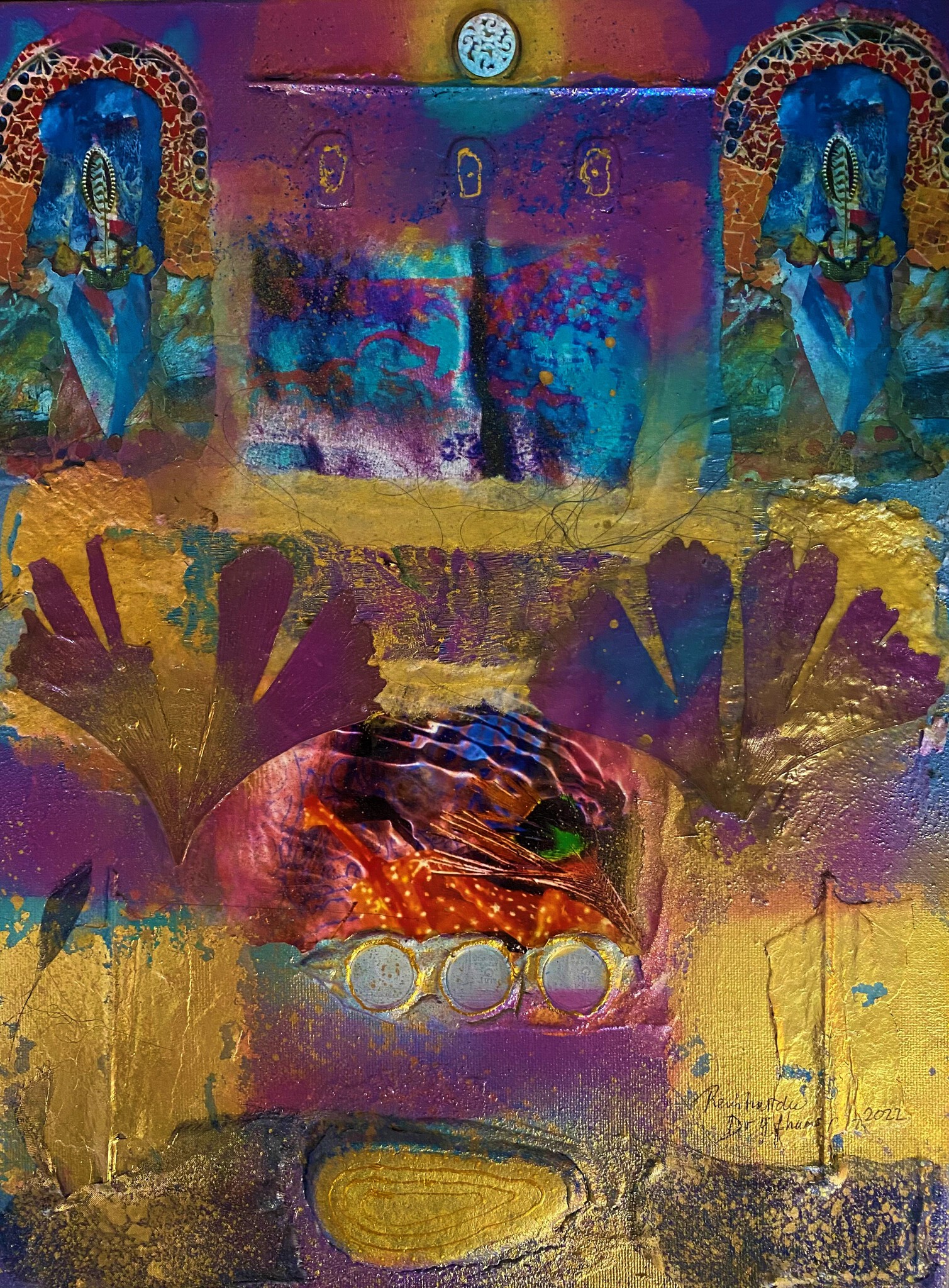 Art Mixed Media Collage Paper Assemblage Poetry Alhambra Goldleaf Handmade Andalucia Watercolors Monuments Decorations Panels Rich Wealth Experimental Visuel Richesse