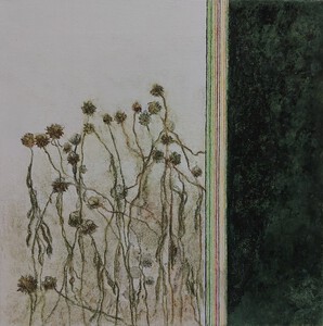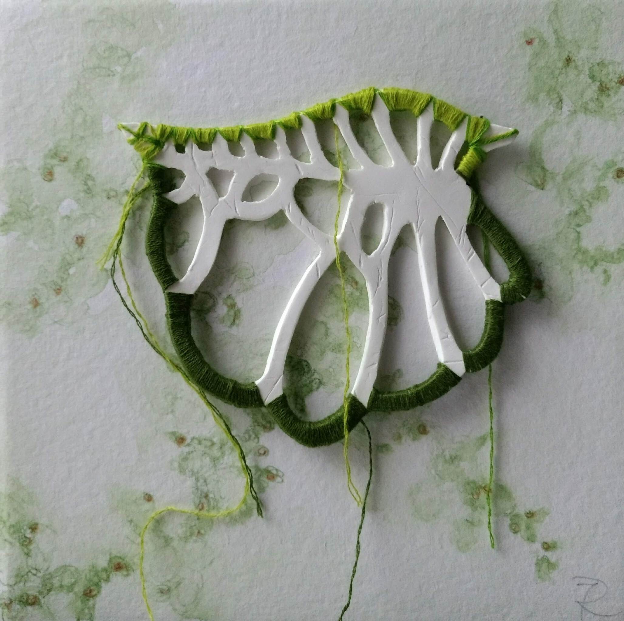 Werk op Aquarelpapier, gemonteerd op doek van 20x20 cm. gemengde technieken