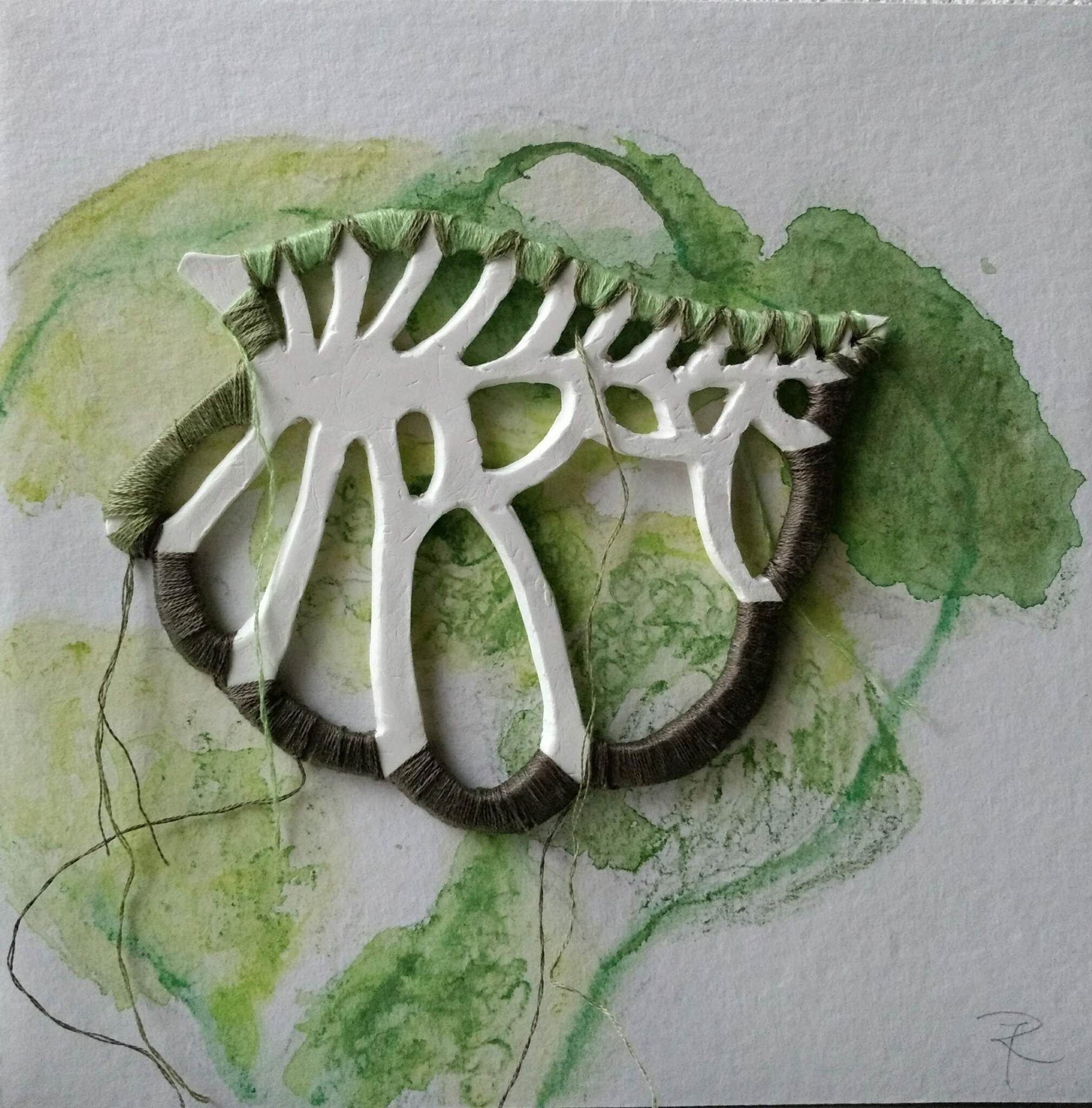 Werk op Aquarelpapier, gemonteerd op doek van 20x20 cm. gemengde technieken