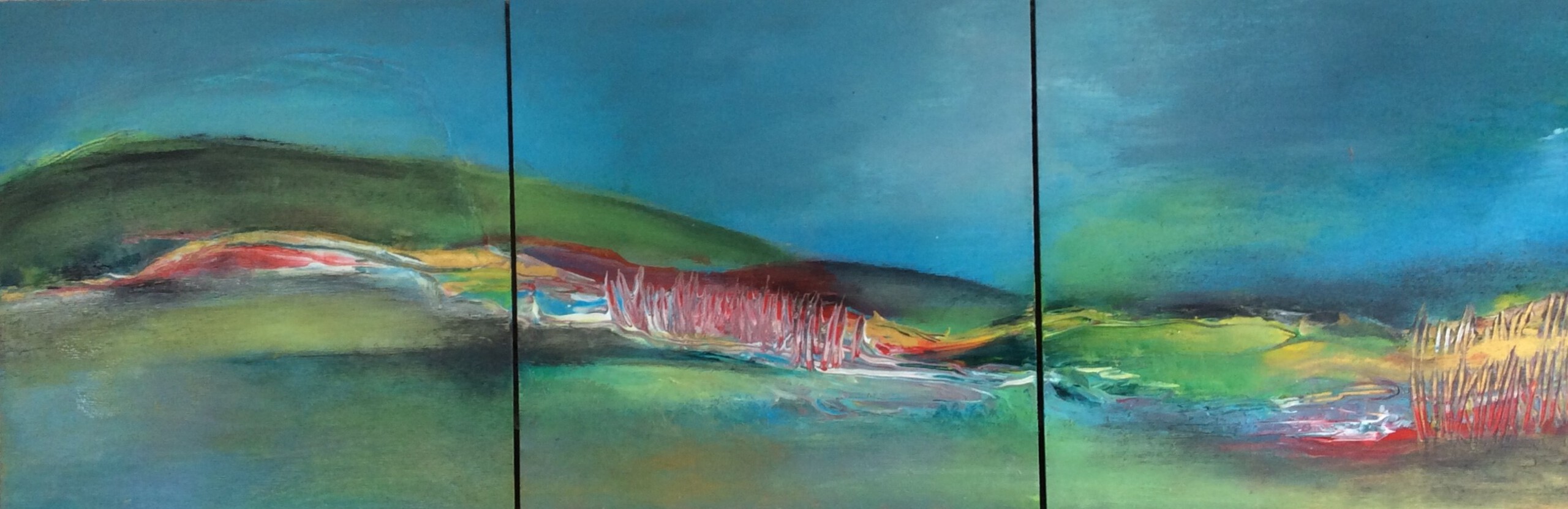 Abstract Blauw Groen Landscape Nature Drieluikje