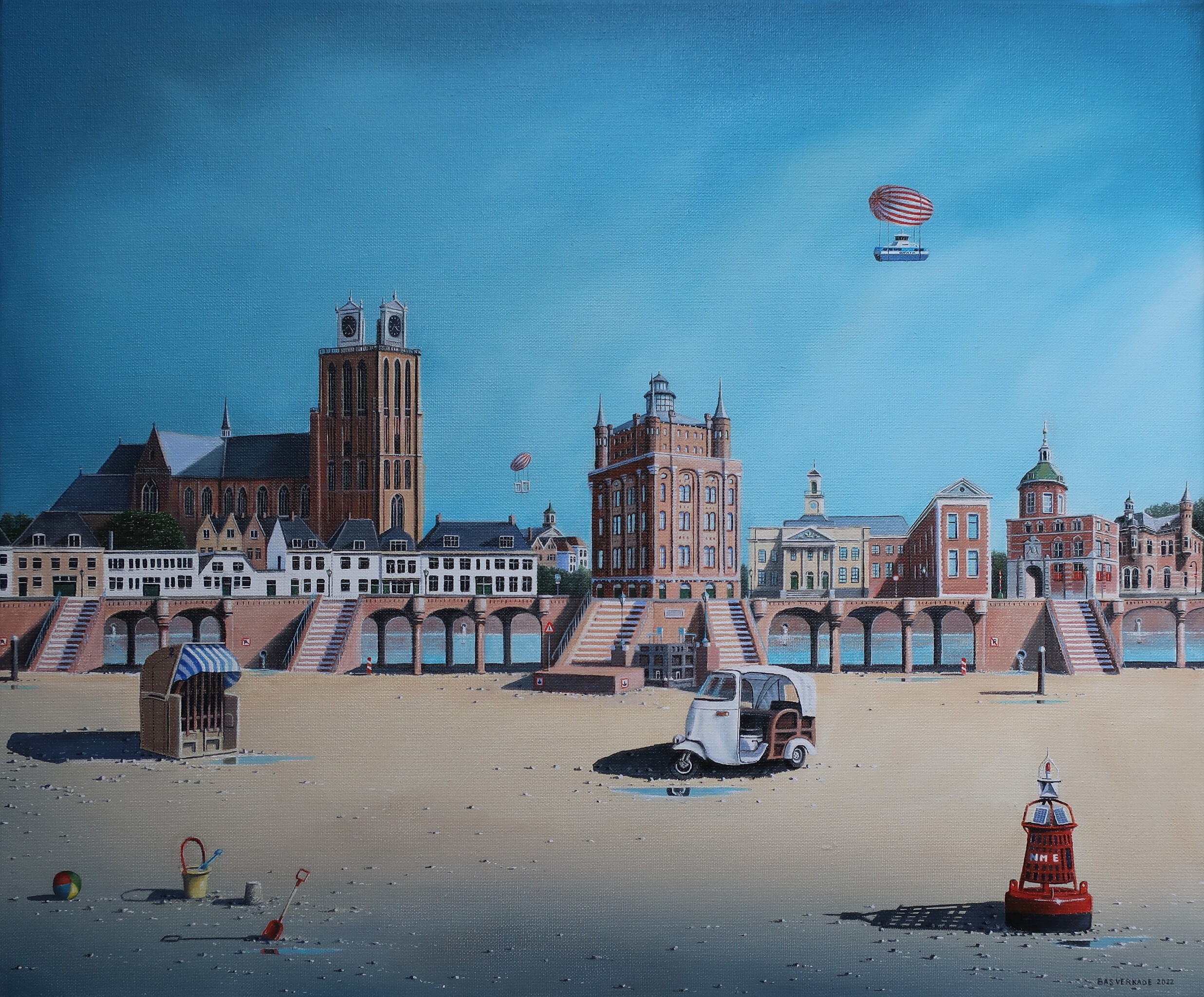 Bas Verkade schildert surrealistische taferelen (olieverf) met fotografische precisie.Zeer verfijnd werk op papier ,doek en paneel.