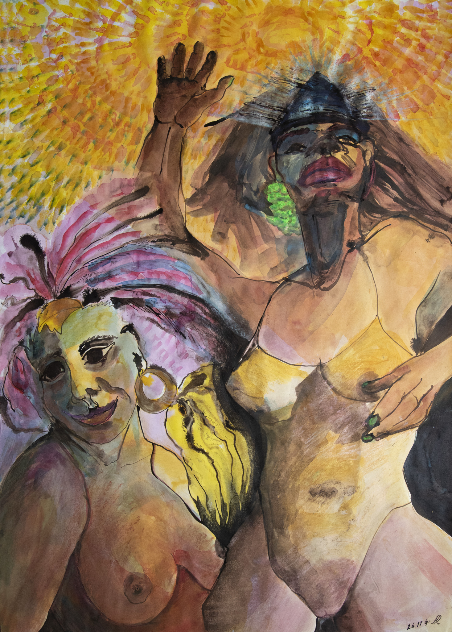 Wervelend erotisch en godinnen van Rio. Aquarel, oost Indische inkt en krijt