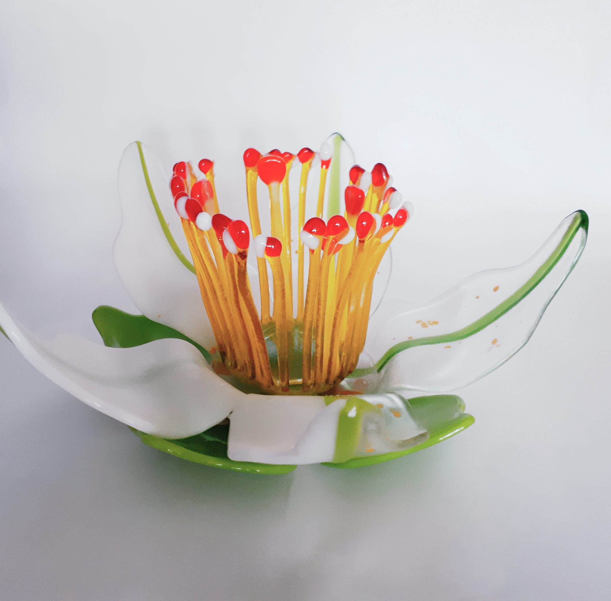 Wit Oranje Geel Yellow Groen Glas Glaskunst Glasfusing Bloem Green White Flower Orange Glass Glassart Glassfusion Sinensis Scheltema Camellia Bullseyeglass Louky Loukyscheltema Theeplant Teaplant