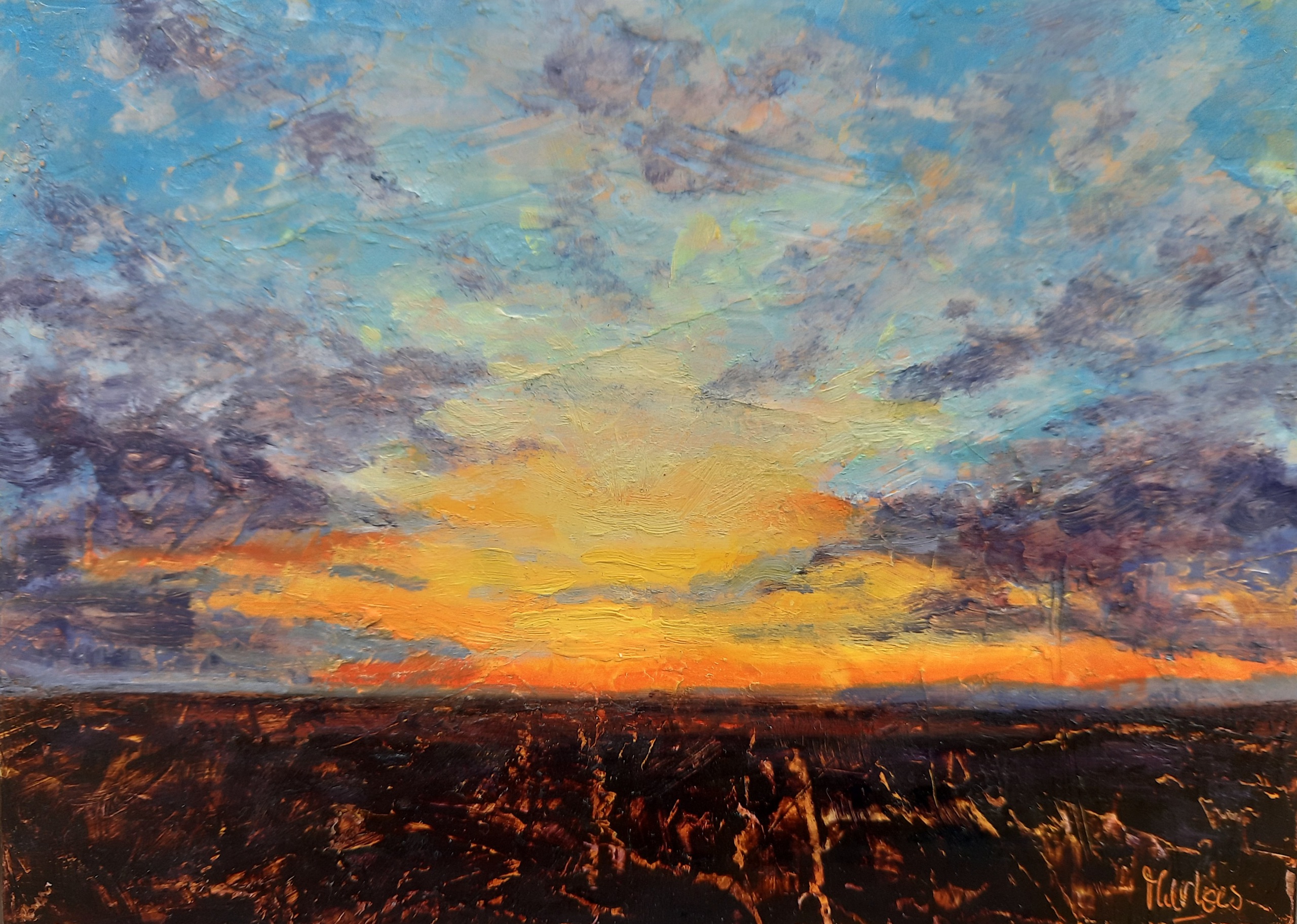 Schilderij Zon Landschap Zonsondergang Olieverf Lucht Ondergaande Aarde Landscape Groningen Miniatuur Grond Akkers Groninger Marloes Muspaneel Oostgroningen Buigel Boering