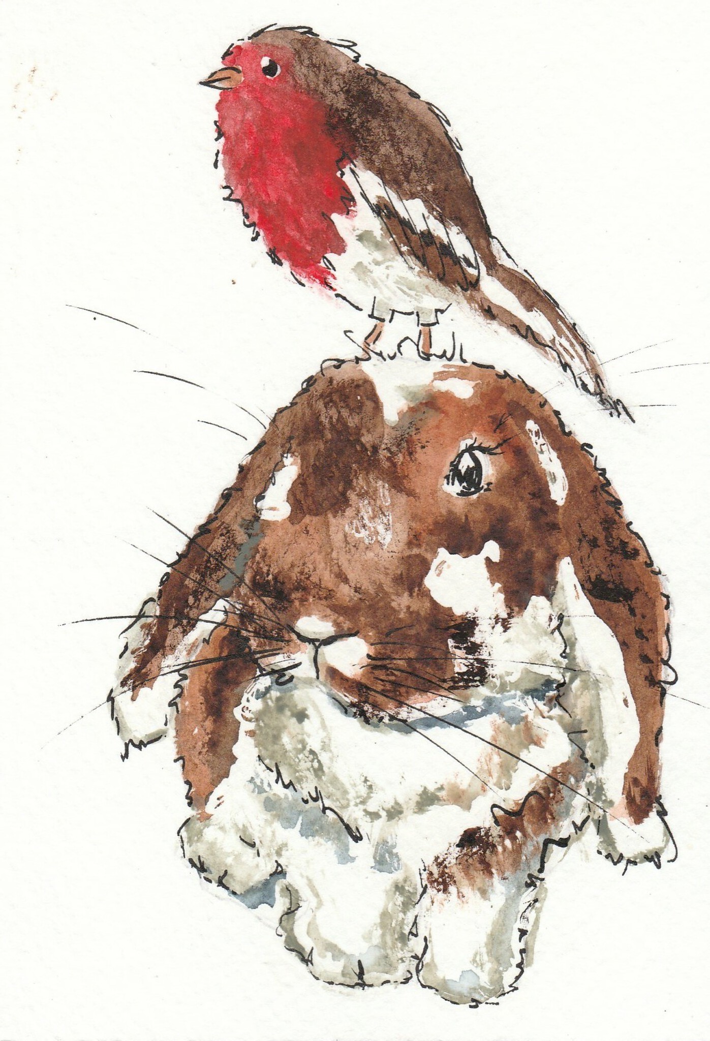 Dier Natuur Konijn Roodborstje Schattig Kerst