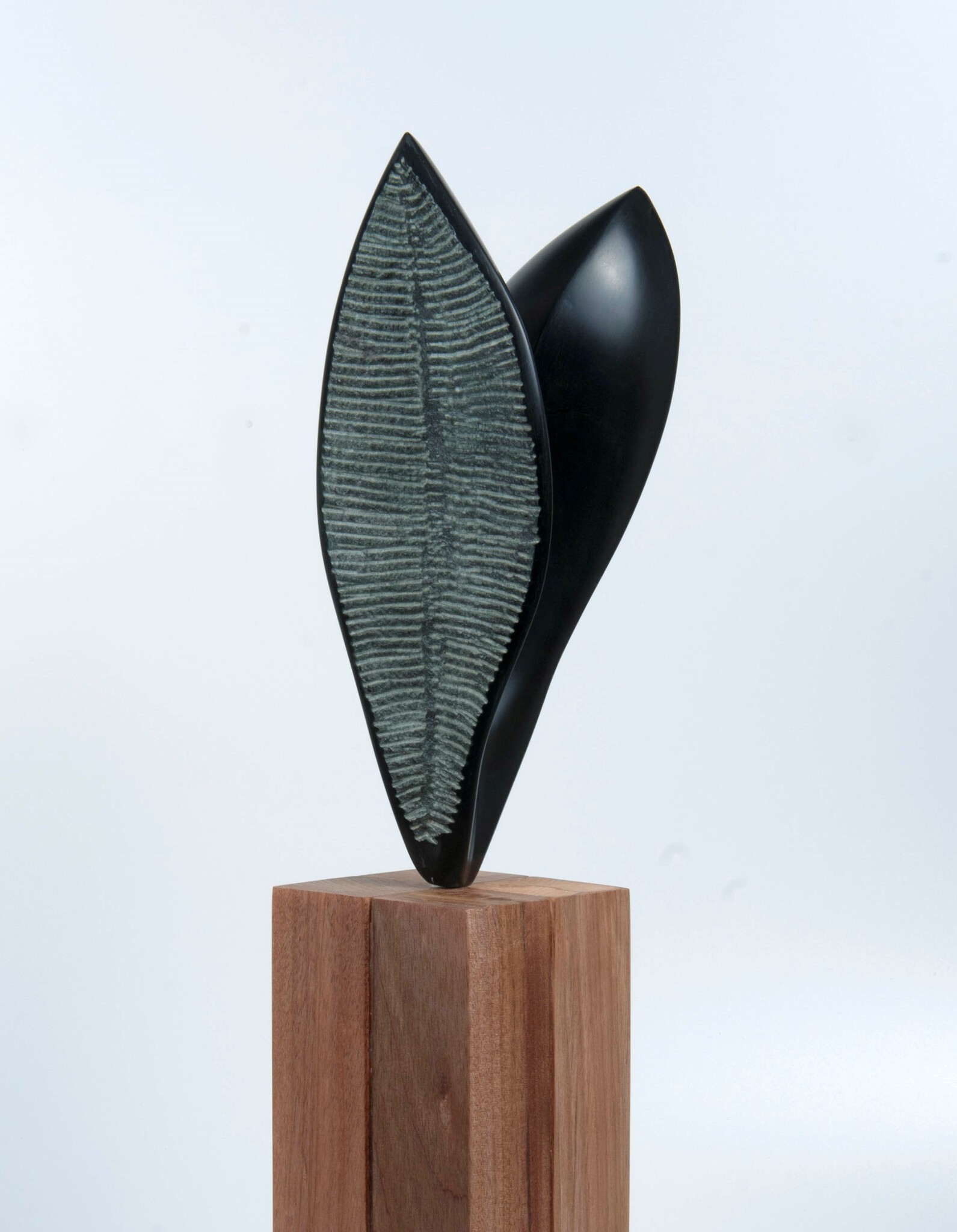Beeld uitgevoerd in zwart galastone, geinspireerd op de natuur.