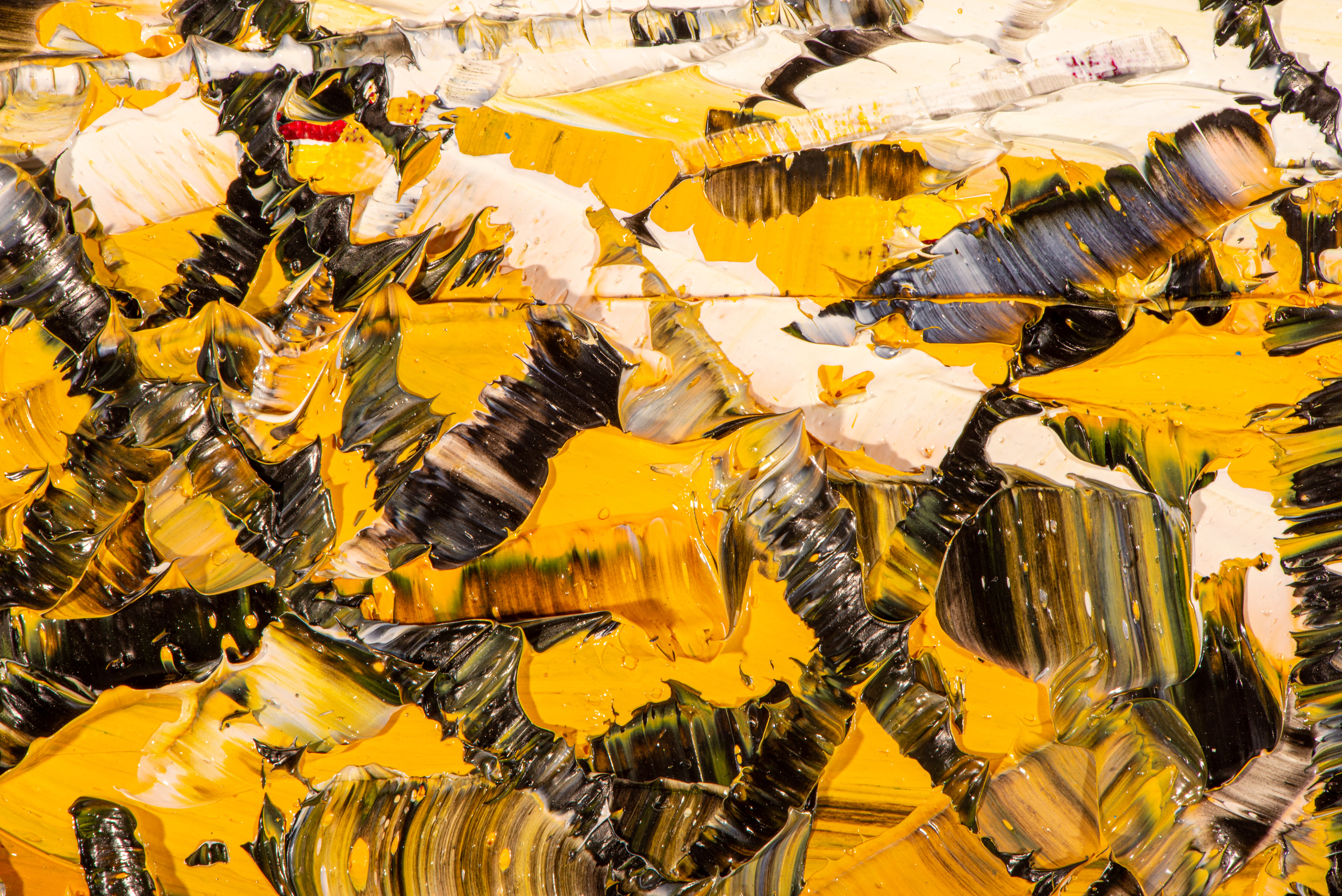 Schilderij Wit Abstract Geel Zwart Kleurrijk Olieverf Closeup