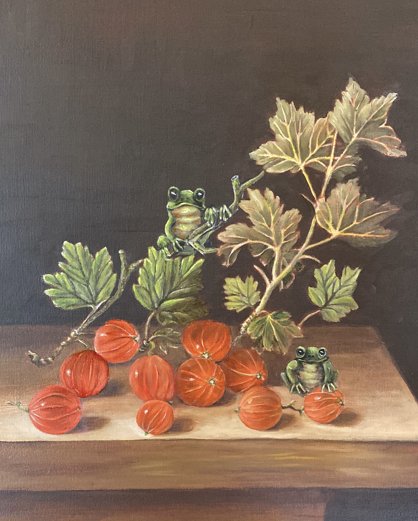 Frogs Oilpainting Oil On Panel Old Masters Layering Technique Berries Painting