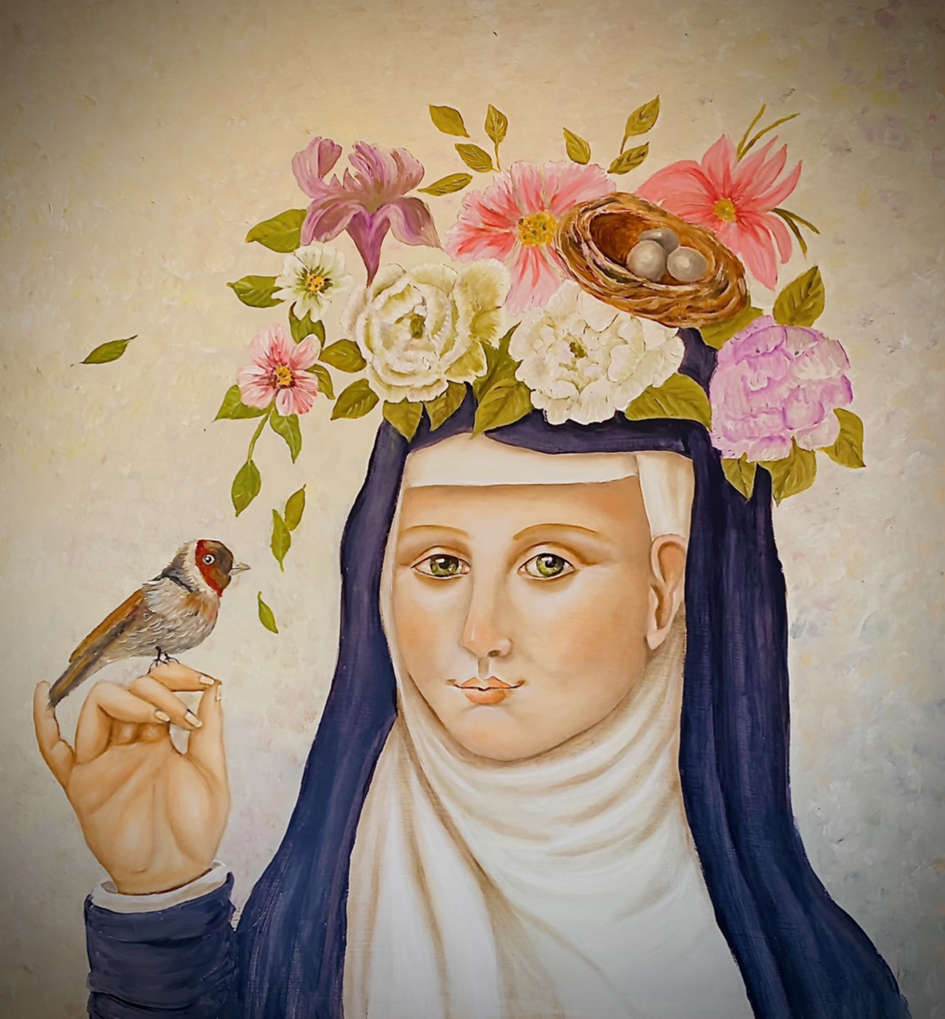 Oil Painting Flowers Bird Secret Surrealistic Wish Nun