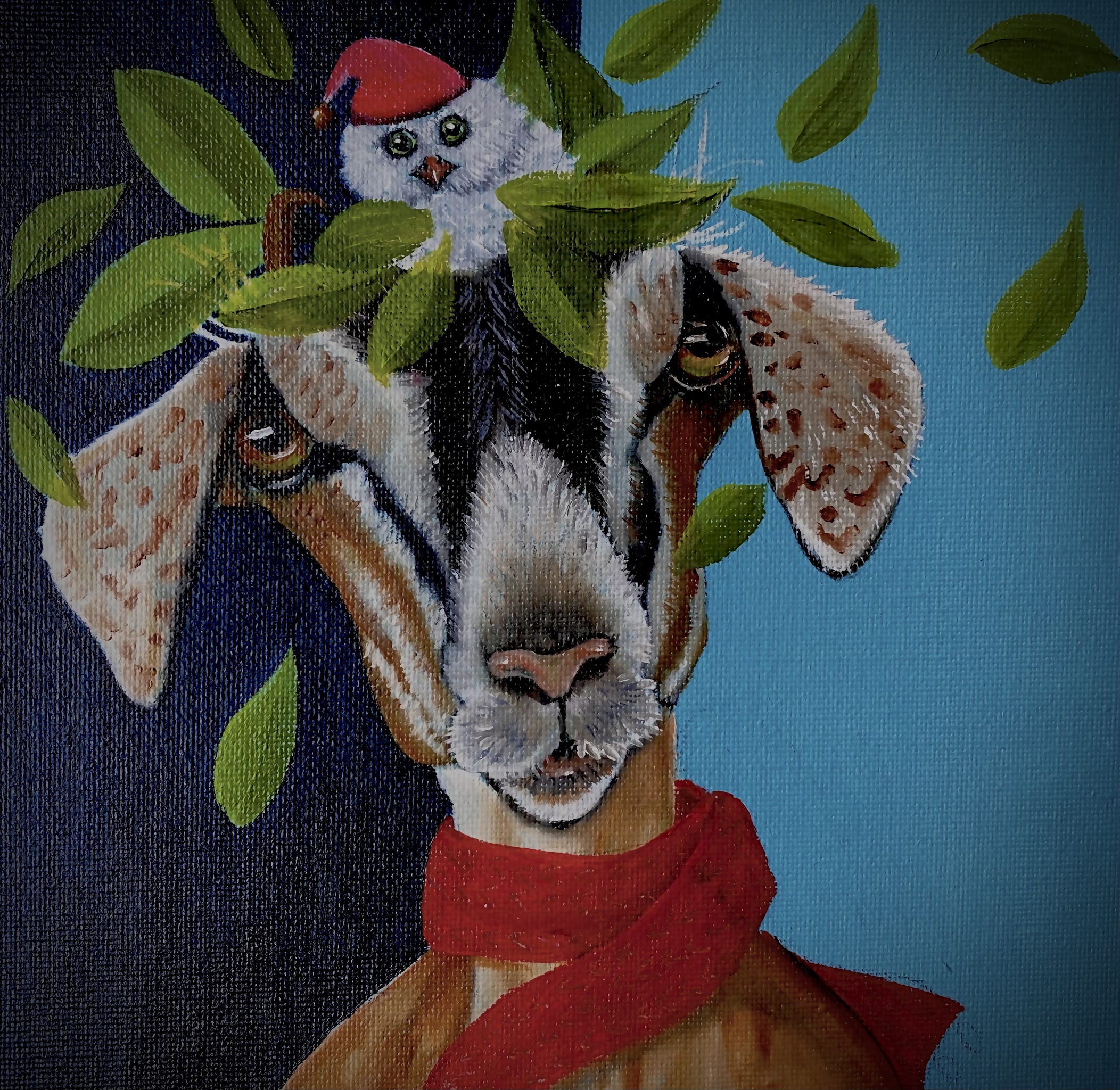 Goat Geit Bird Vogeltje Oil Painting Surealistisch On Canvassed Panel