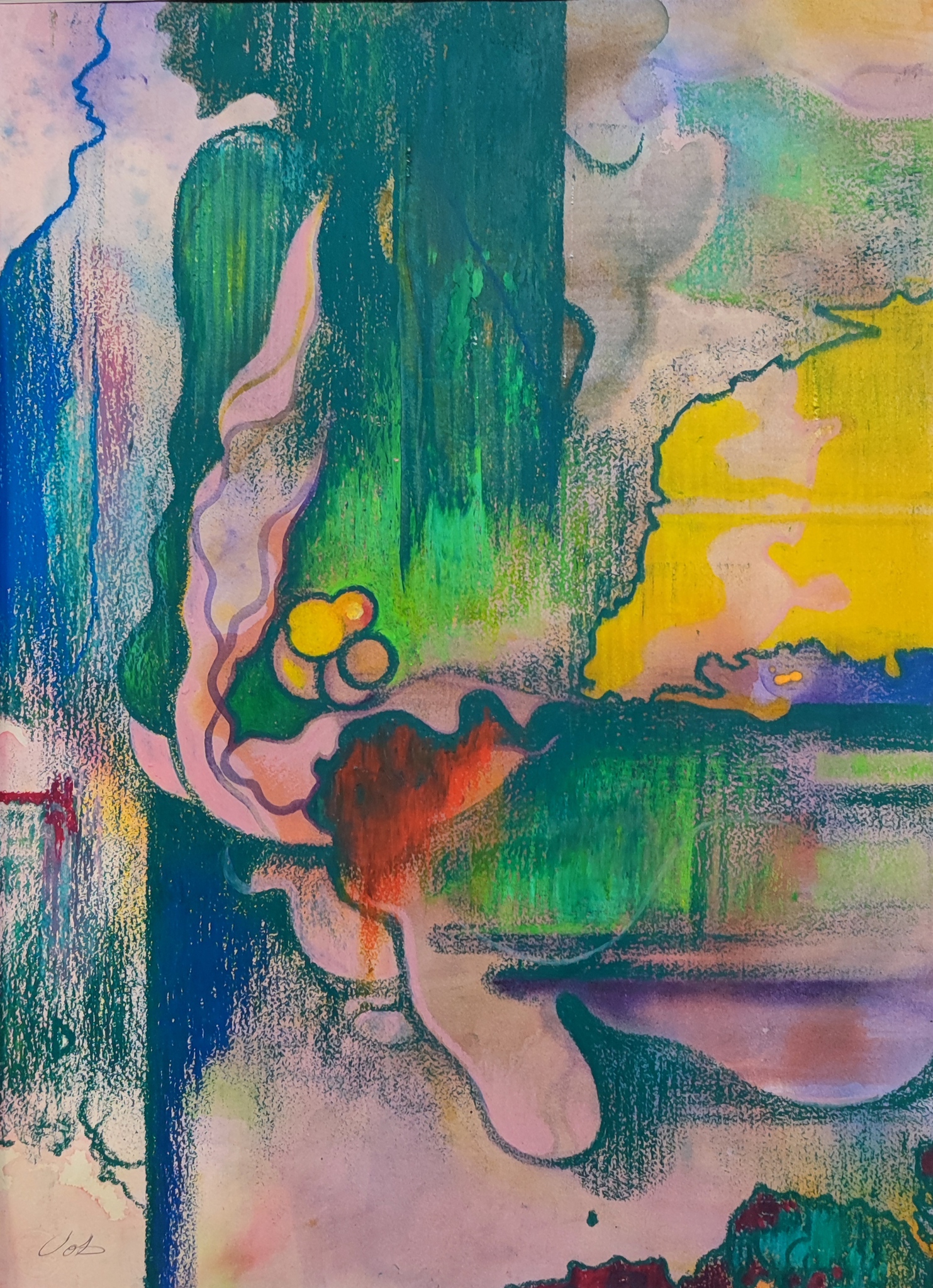 Abstract Figuratief Rood Oranje Geel Blauw Paars Groen Regenboog Papier Aquarel Oliepastel Surreëel Konijn Job Vetkrijt Cox Konijnenpoot