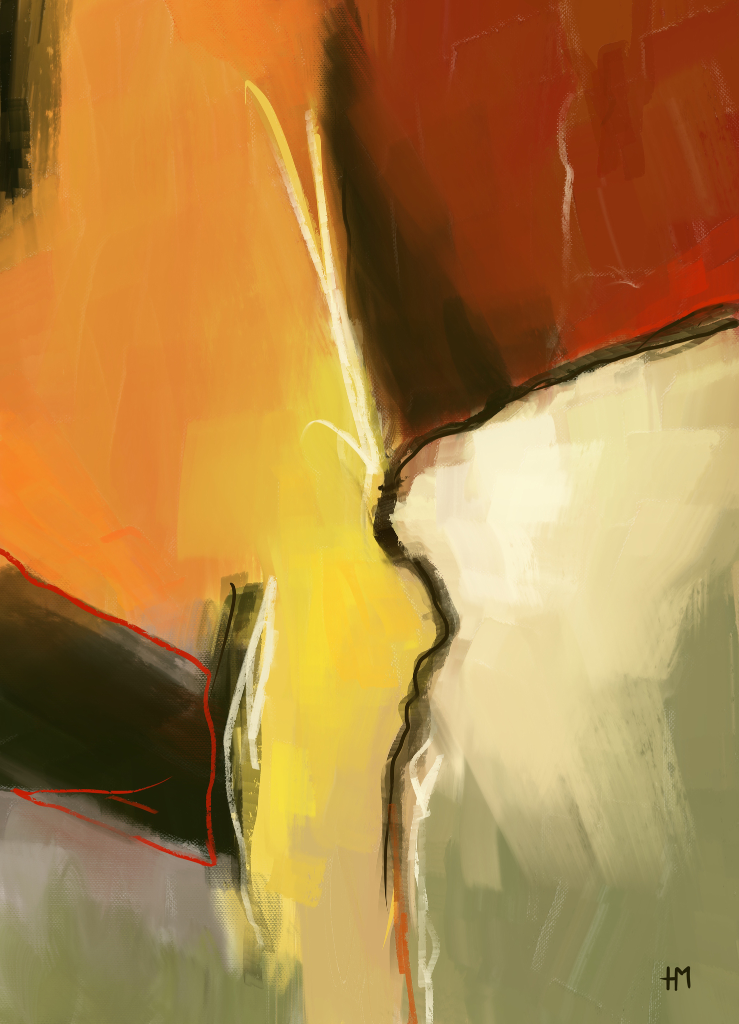 Abstracte kleuren, schilderij met oranje, geel en rood