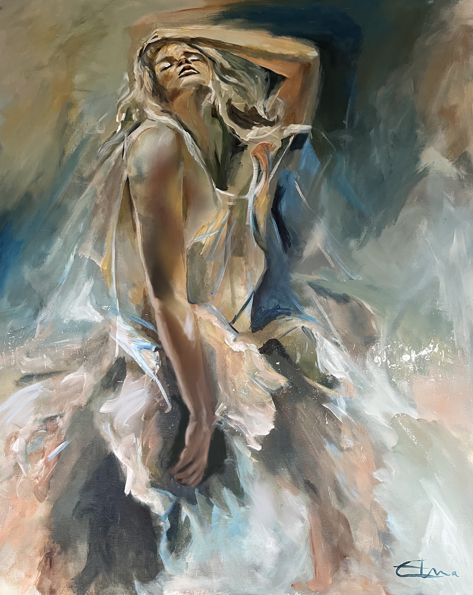 Figuratief Blauw Acryl Vrouw Bruin Lyrisch
