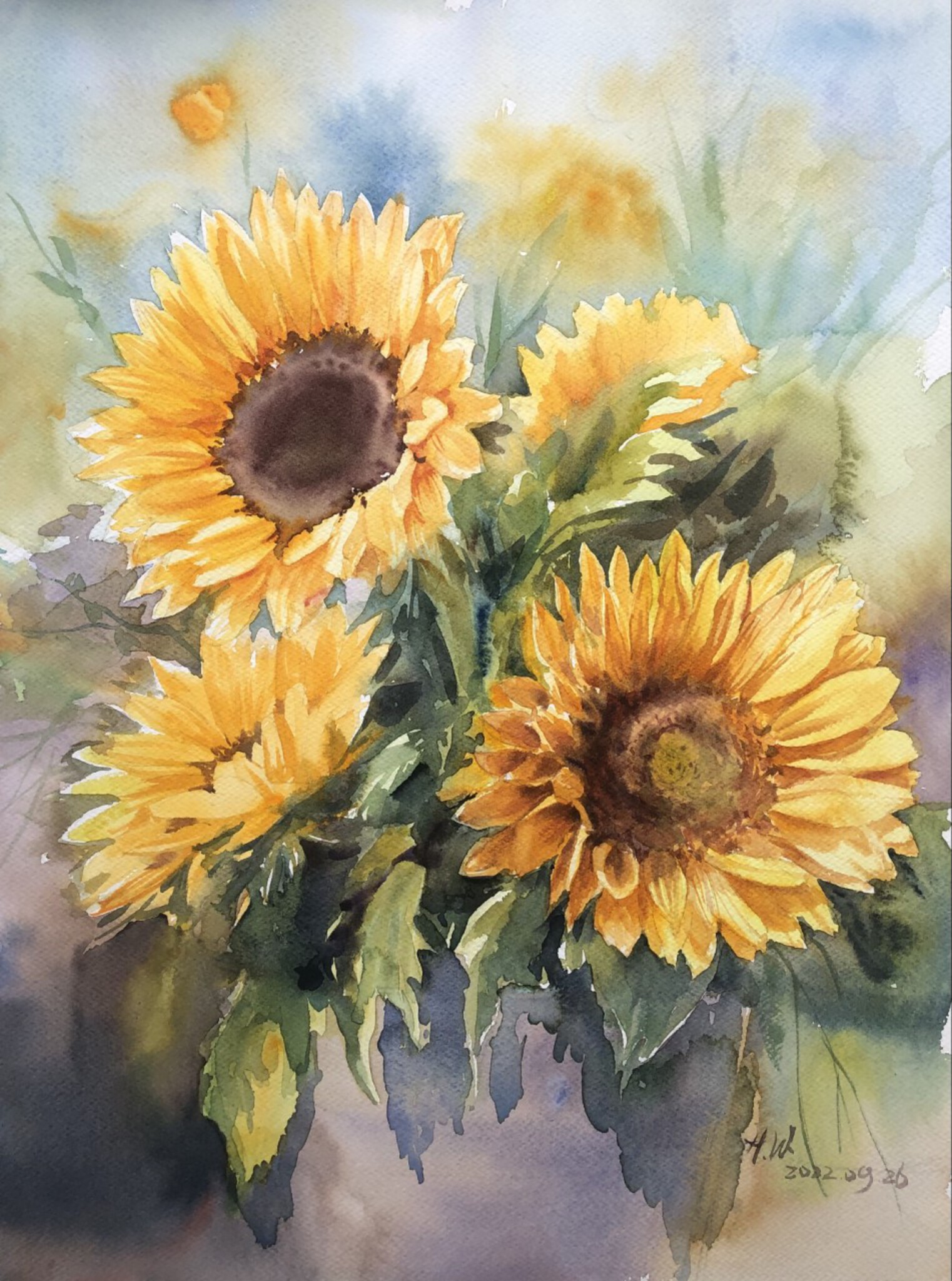 Aquarel Zonnebloemen
