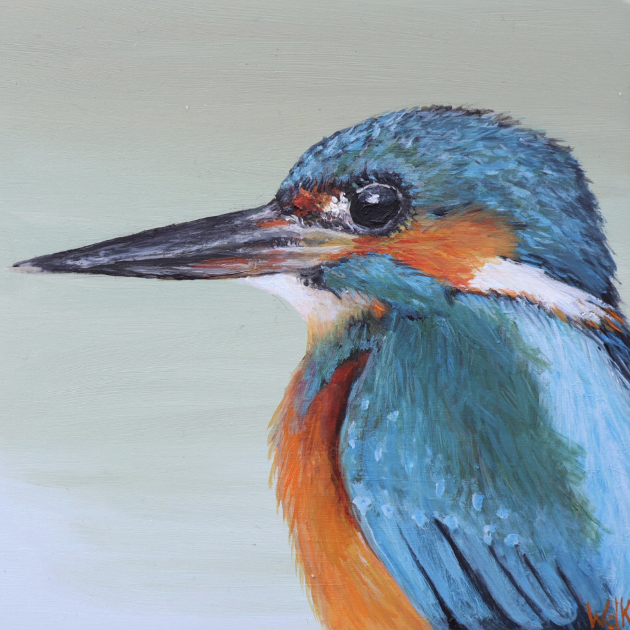 IJsvogel olieverf met zwart baklijstje
