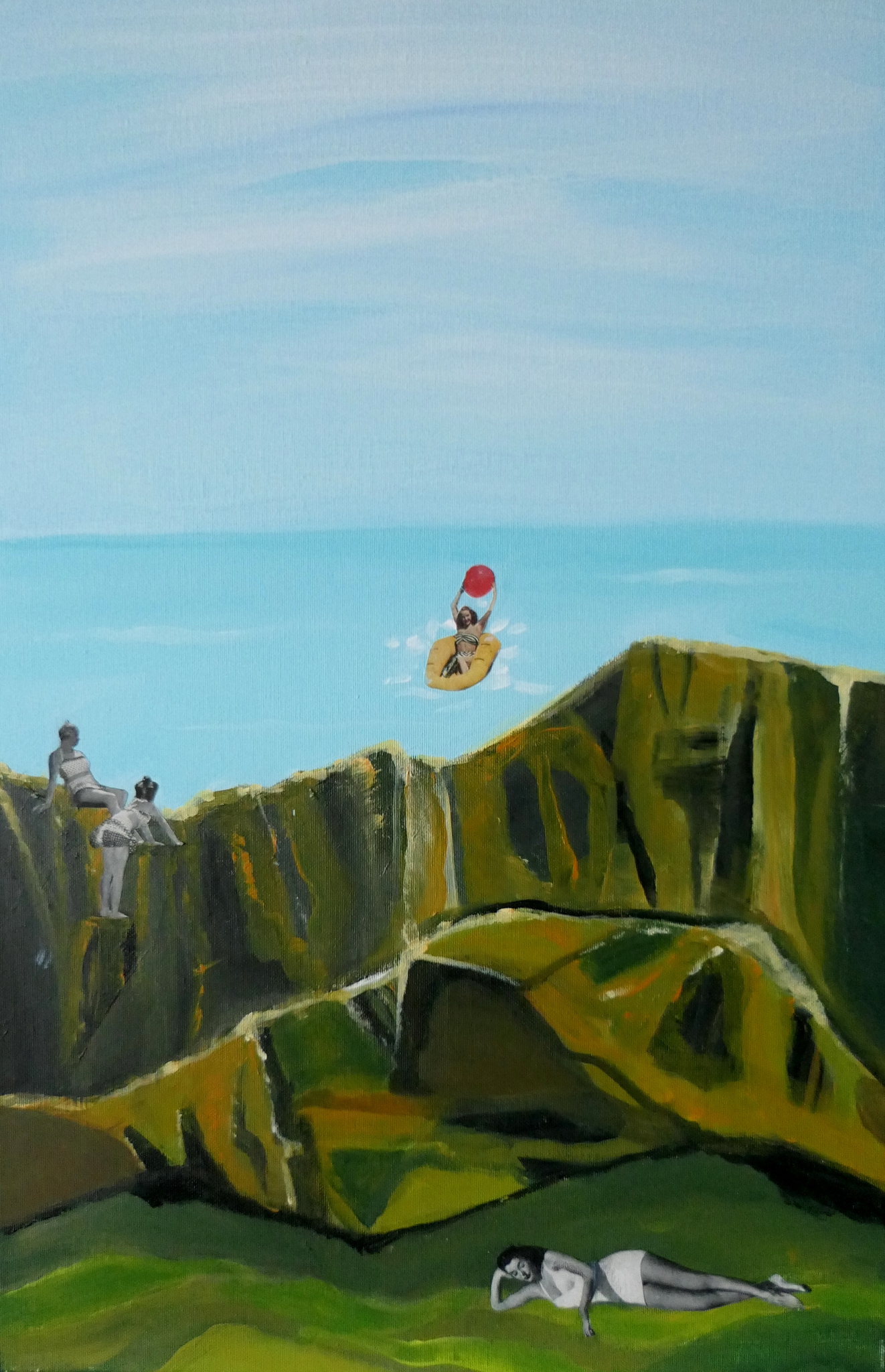 Vrouwen Zee Water Bergen Lucht Spelen Zomer Rotsen Bootje Zwemmen Varen Bal Grasland Liggen Badpak Zonnen Relaxen Callosa