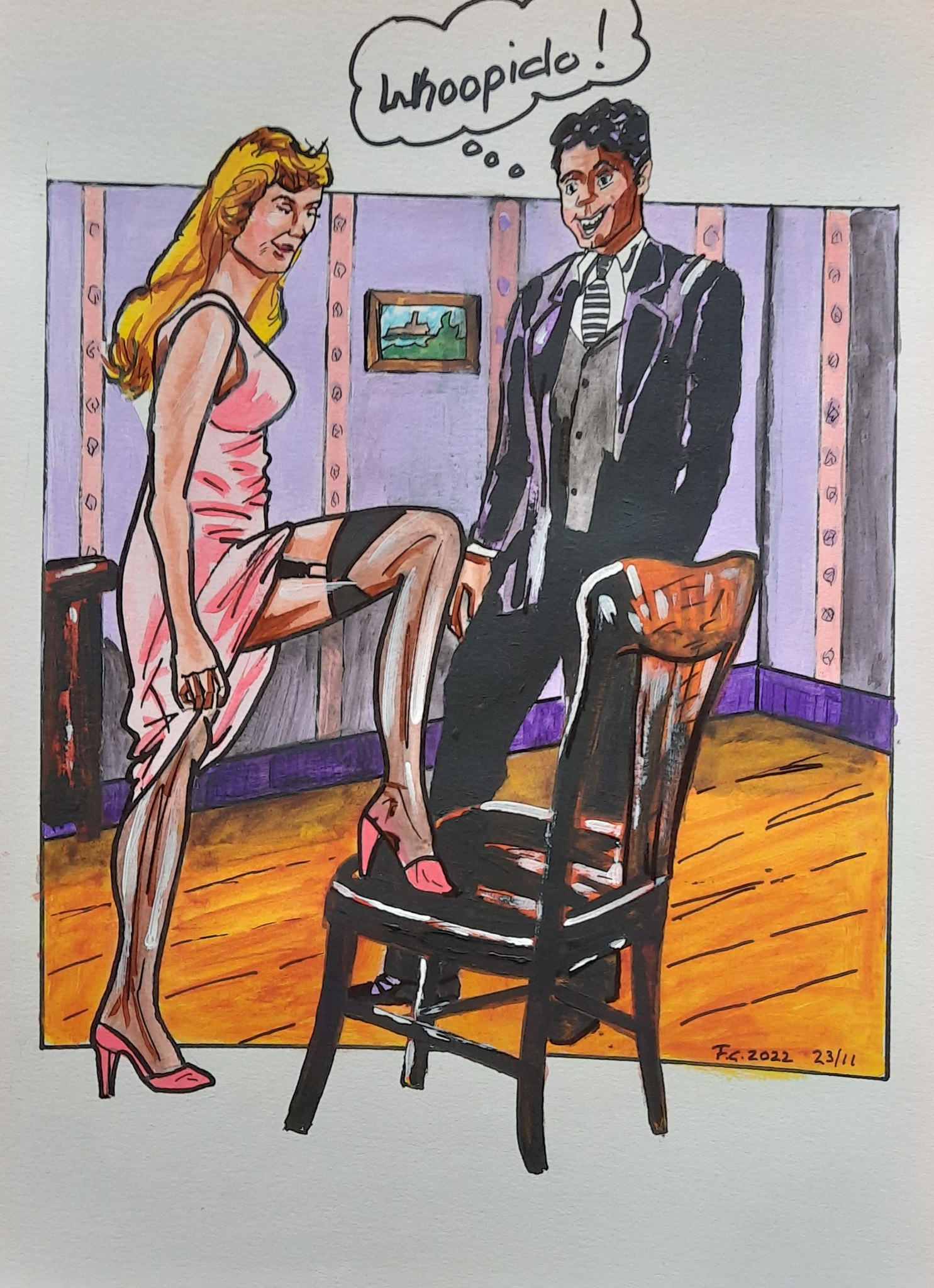 Vrouw Man Erotiek Mixedmedia Popart Lingerie Verleiding Vintage Seduction Metoo?