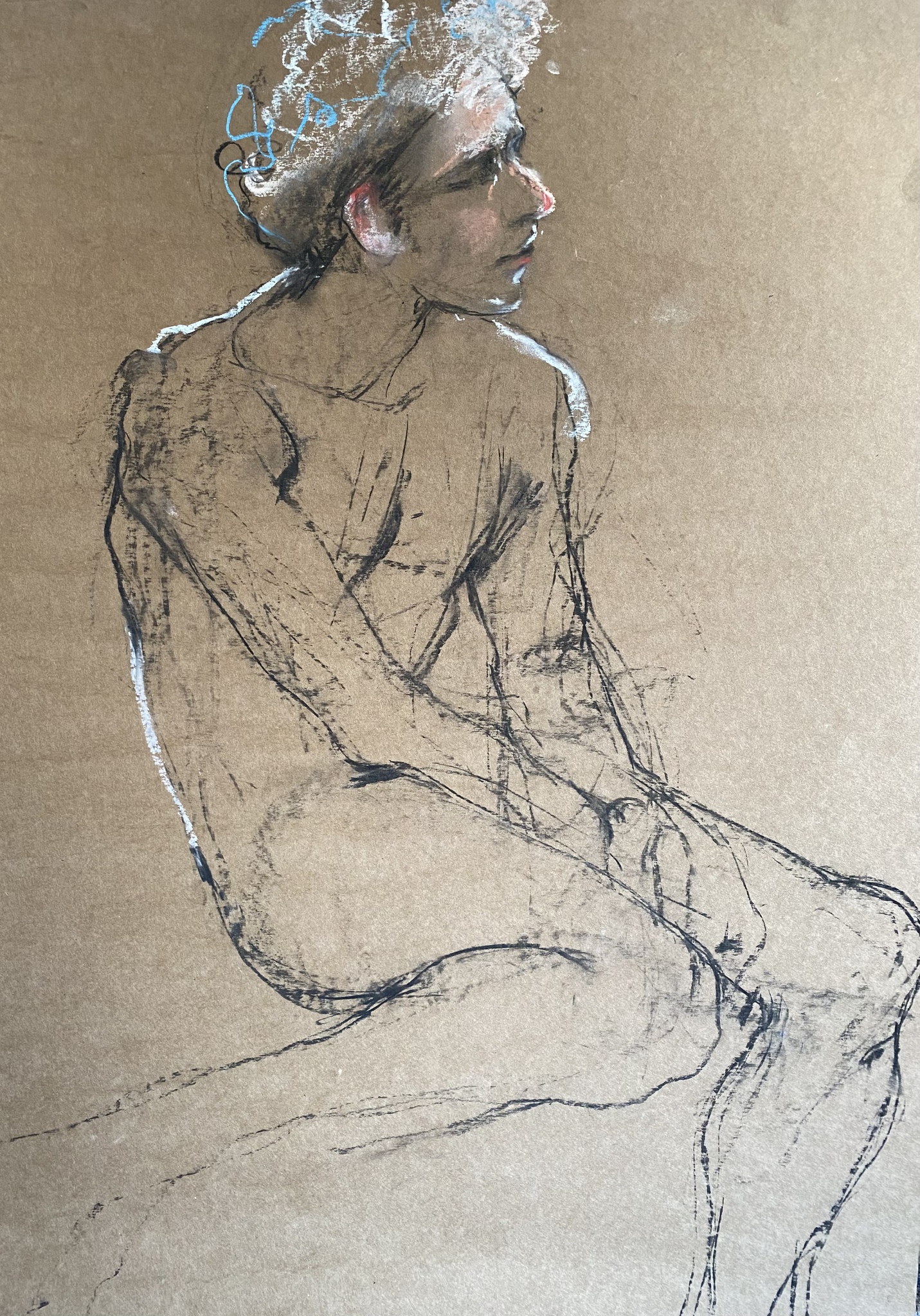 Model mannelijk naakt houtskool potlood pastelkrijt gemengde techniek op Kraft papier