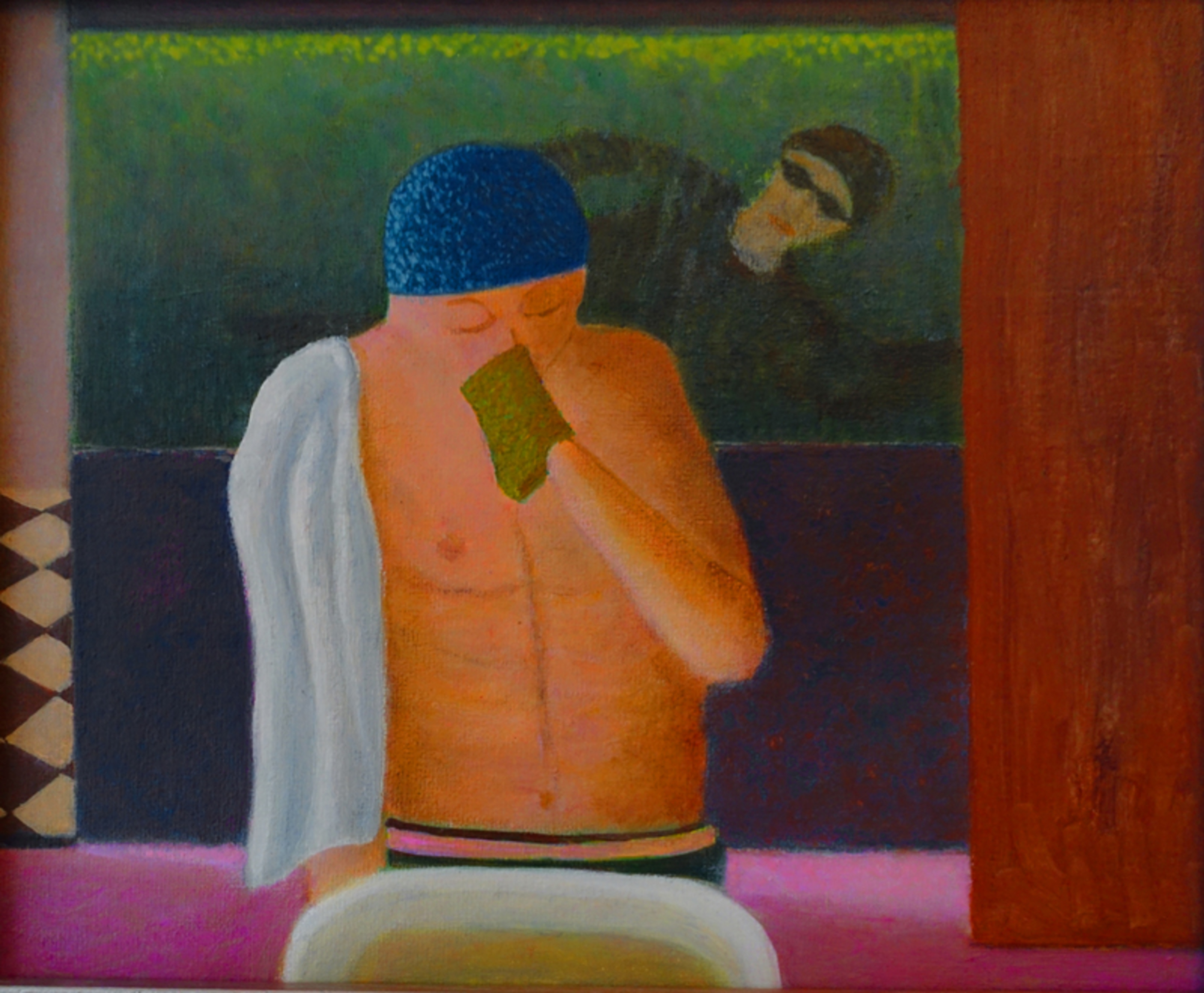 realisme. surrealisme. strip achtig. glacerend. olieverf, oliepastel, fineliner.