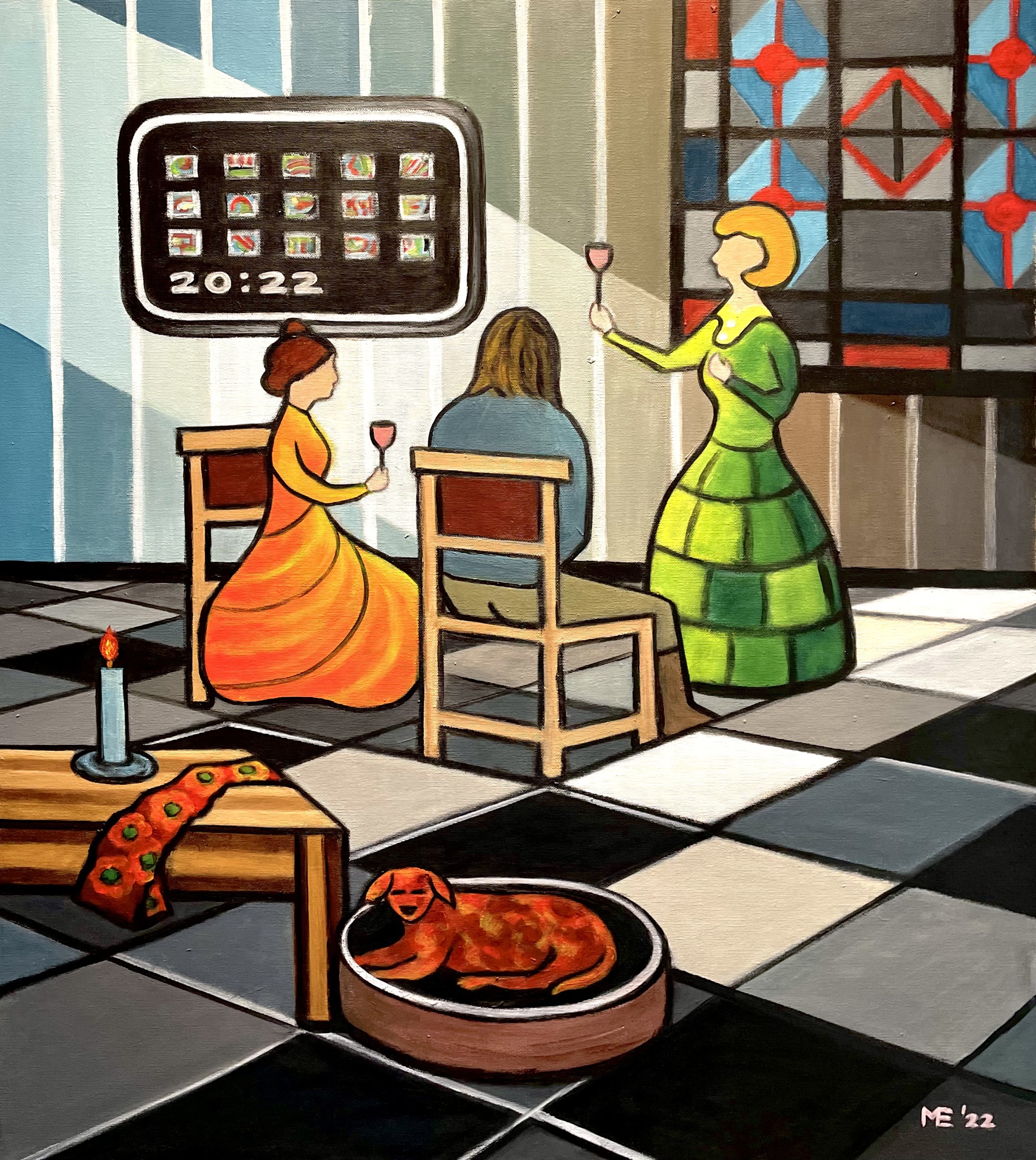 Mijn inzending voor de online wedstrijd "De Nieuwe Vermeer". Een variant op het verdwenen werk ‘Het Concert’ van Johannes Vermeer. De titel is afgeleid van het bekende spreekwoord 'Van het concert des levens krijgt niemand een program'. Een momentopname van een gezellig en warm samenzijn. De boodschap van dit schilderij is dat je nooit weet hoe de dag van morgen er uit zal zien, dus geniet van het moment!