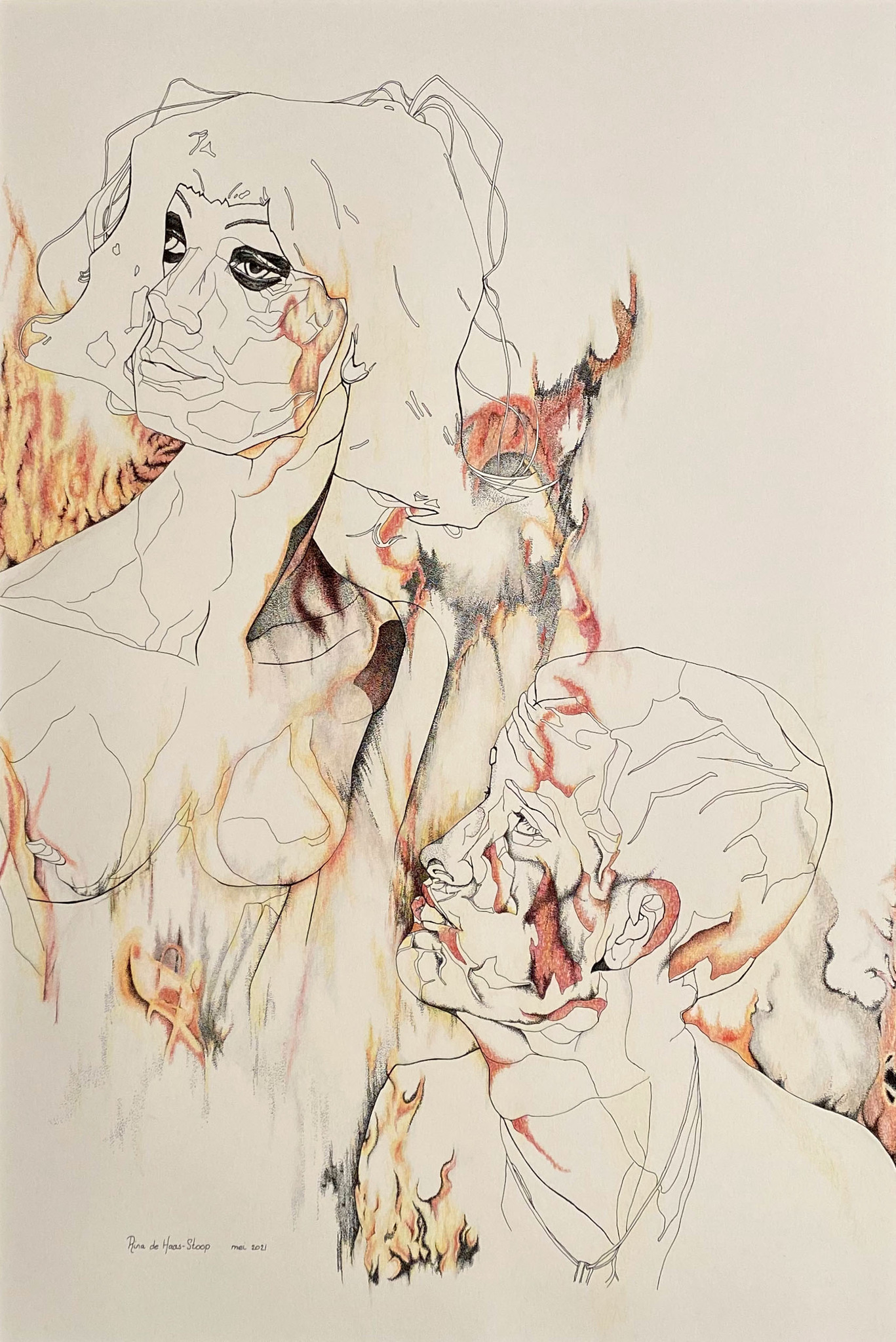 Rina de Haas, vormgeefster. Gespecialiseerd in portrettekenen met als uitgangspunt het verhaal áchter het portret. Mijn schriftuur is het opbouwen van het totale beeld met structuren uit de natuur.