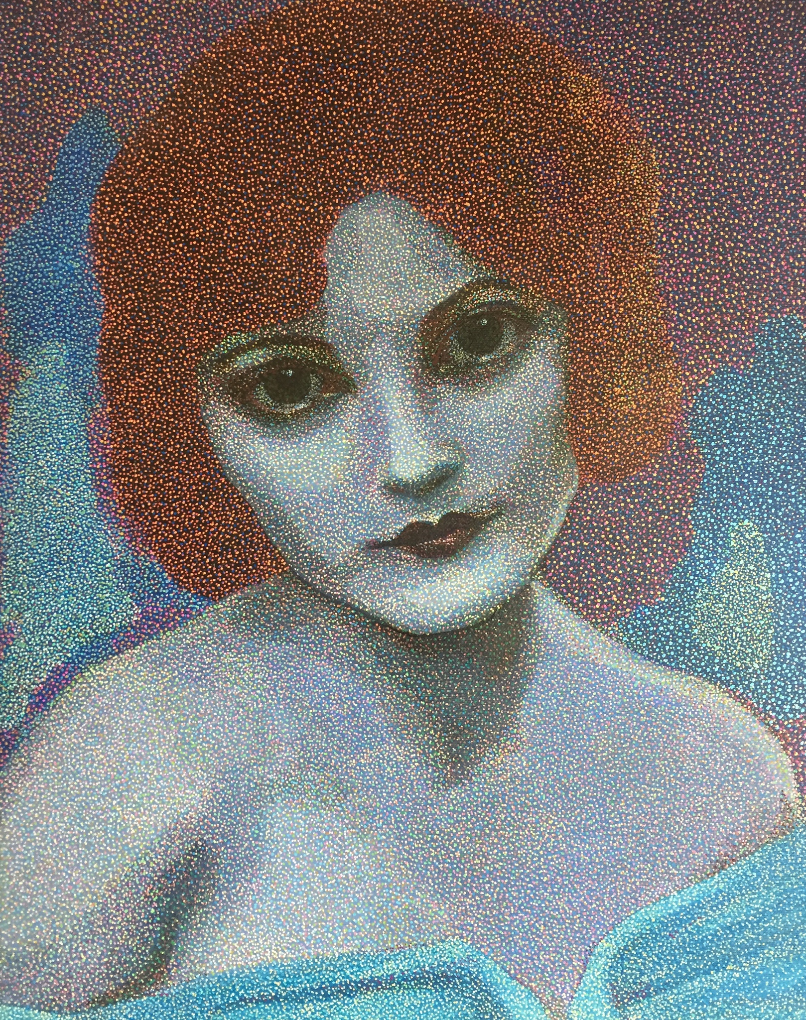 In mijn 'modern pointillistische' werk onderzoek ik of je de ziel kunt ‘vangen’ in een portret. De gelaagdheid van de duizenden stipjes, geeft de gelaagdheid van de binnenwereld weer.