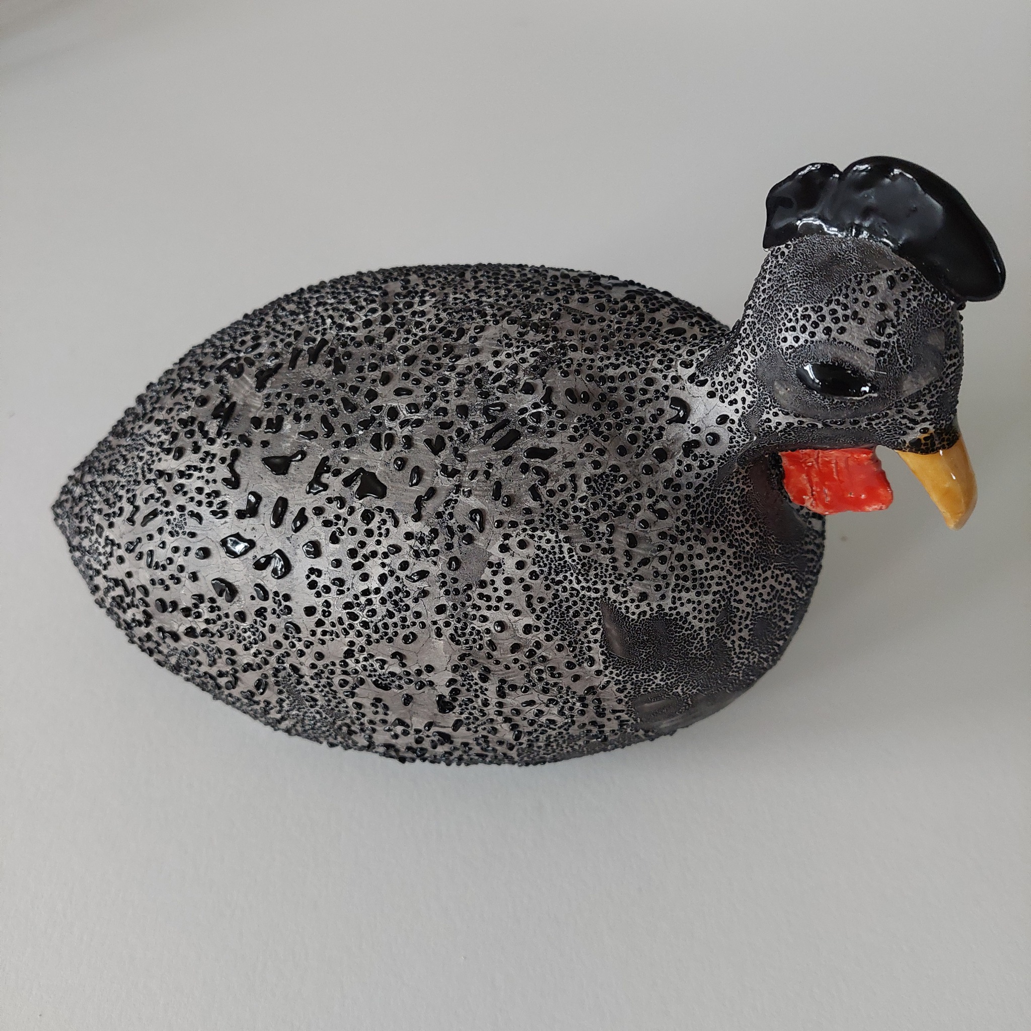 Zwart Parelhoen Vogel Klei Keramiek Glazuur Rood